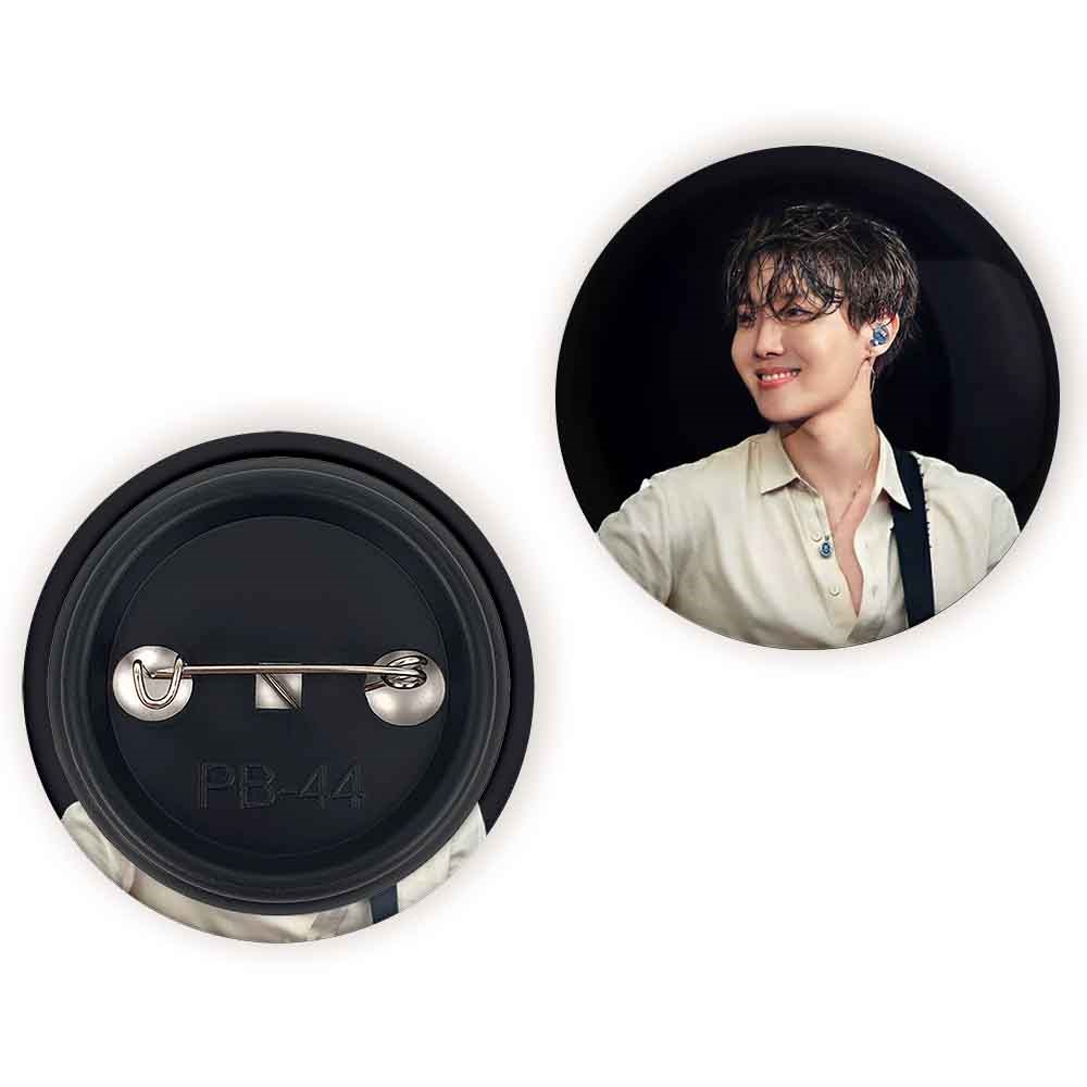 پیکسل 44 میلی متری جی هوپ J Hope گروه بی تی اس BTS خندالو با روکش سلفون حرارتی مات مخملی ضدخش و قطعه پشتی رنگی تولید شده است.پلاستیکی پشت پیکسل با سوزن یک تکه ثابت و بدون لغزش و جا به جایی، ایستایی بسیار بهتری نسبت به پشتی فلزی پیکسل دارند که این مهم در تولید این محصول نیز رعایت شده است.