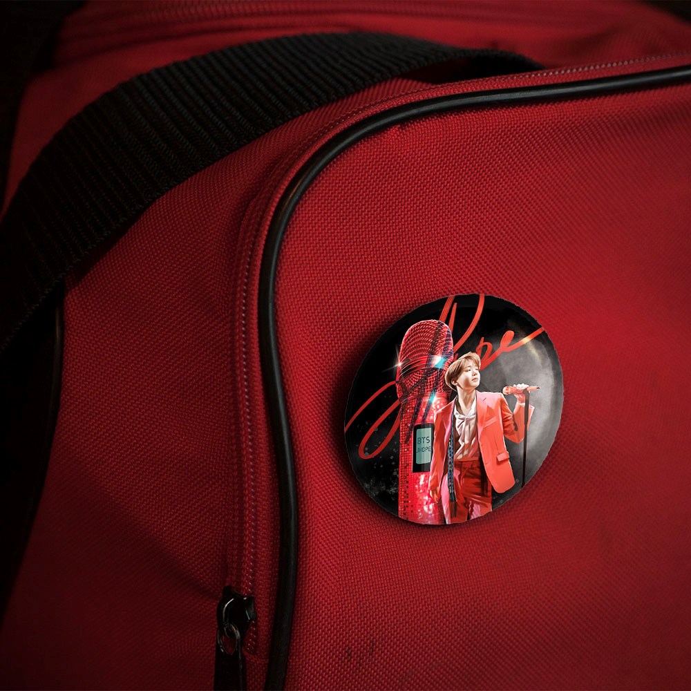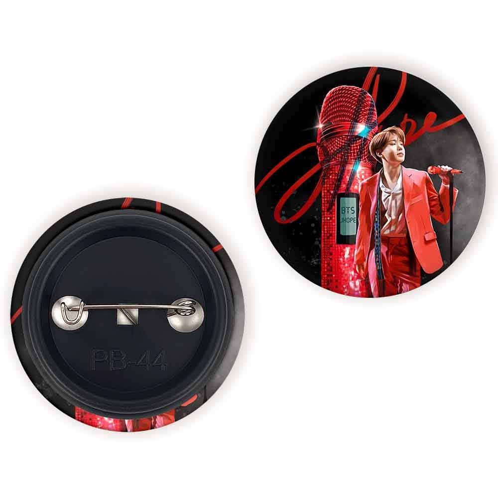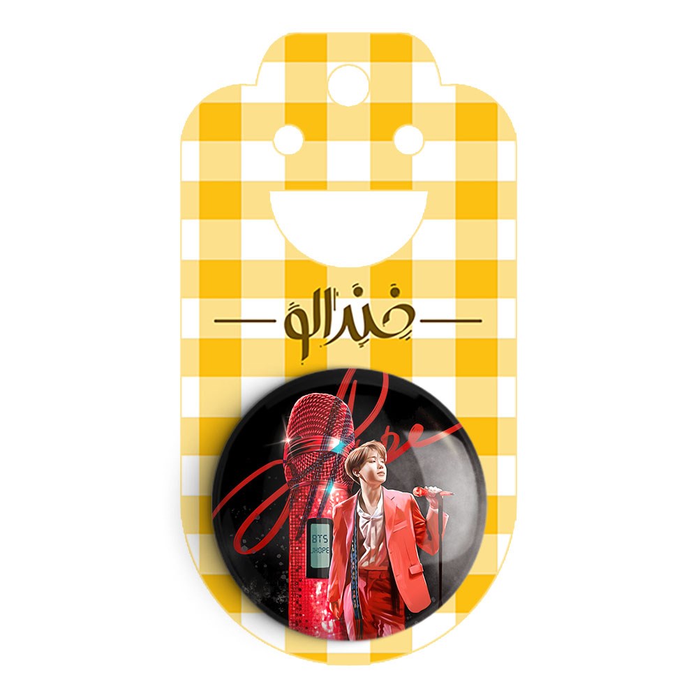 پیکسل 44 میلی متری جی هوپ J Hope گروه بی تی اس BTS خندالو با روکش سلفون حرارتی مات مخملی ضدخش و قطعه پشتی رنگی تولید شده است.پلاستیکی پشت پیکسل با سوزن یک تکه ثابت و بدون لغزش و جا به جایی، ایستایی بسیار بهتری نسبت به پشتی فلزی پیکسل دارند که این مهم در تولید این محصول نیز رعایت شده است.