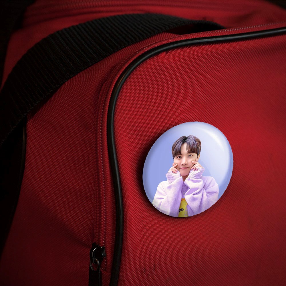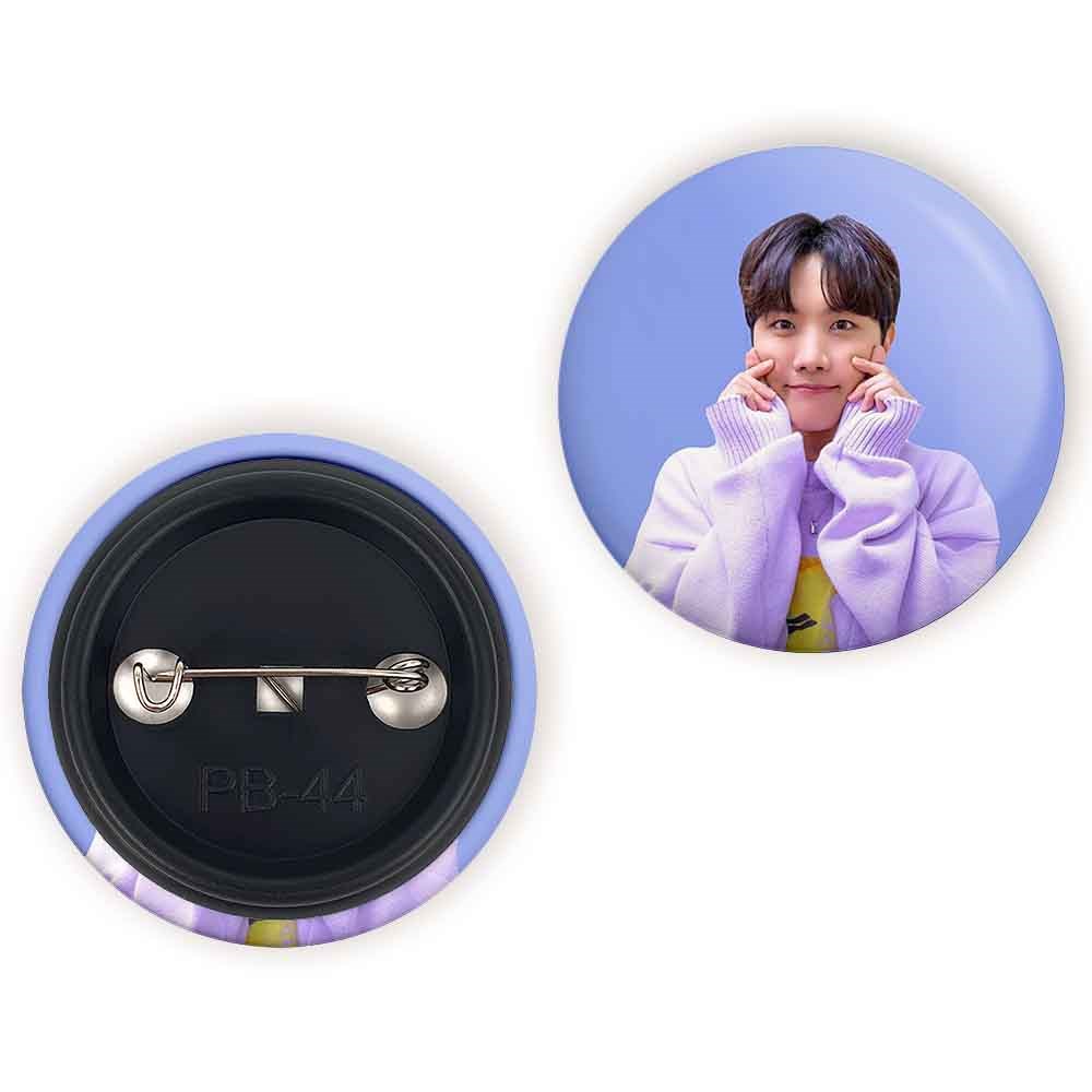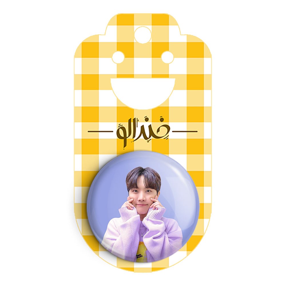 پیکسل 44 میلی متری جی هوپ J Hope گروه بی تی اس BTS خندالو با روکش سلفون حرارتی مات مخملی ضدخش و قطعه پشتی رنگی تولید شده است.پلاستیکی پشت پیکسل با سوزن یک تکه ثابت و بدون لغزش و جا به جایی، ایستایی بسیار بهتری نسبت به پشتی فلزی پیکسل دارند که این مهم در تولید این محصول نیز رعایت شده است.