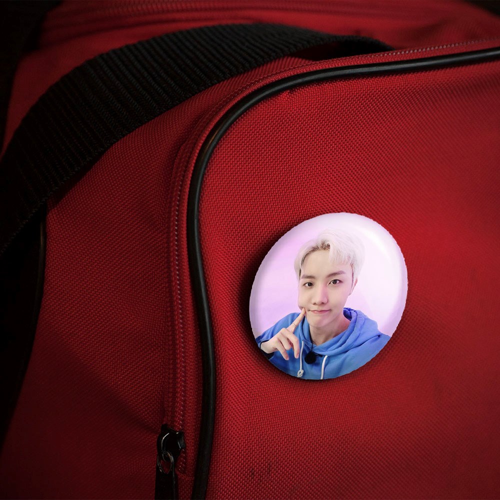پیکسل 44 میلی متری جی هوپ J Hope گروه بی تی اس BTS خندالو با روکش سلفون حرارتی مات مخملی ضدخش و قطعه پشتی رنگی تولید شده است.پلاستیکی پشت پیکسل با سوزن یک تکه ثابت و بدون لغزش و جا به جایی، ایستایی بسیار بهتری نسبت به پشتی فلزی پیکسل دارند که این مهم در تولید این محصول نیز رعایت شده است.