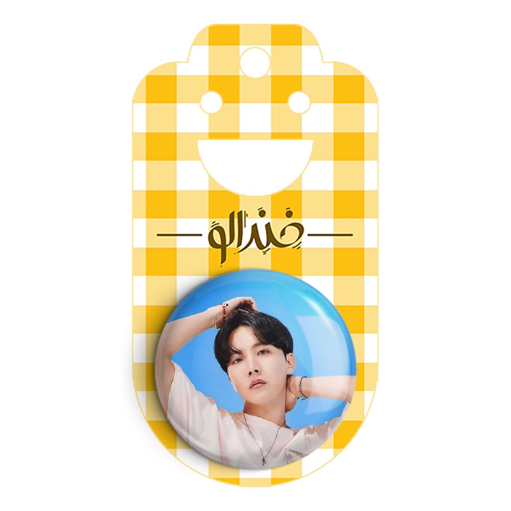 پیکسل 44 میلی متری جی هوپ J Hope گروه بی تی اس BTS خندالو با روکش سلفون حرارتی مات مخملی ضدخش و قطعه پشتی رنگی تولید شده است.پلاستیکی پشت پیکسل با سوزن یک تکه ثابت و بدون لغزش و جا به جایی، ایستایی بسیار بهتری نسبت به پشتی فلزی پیکسل دارند که این مهم در تولید این محصول نیز رعایت شده است.
