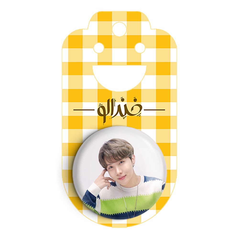پیکسل 44 میلی متری جی هوپ J Hope گروه بی تی اس BTS خندالو با روکش سلفون حرارتی مات مخملی ضدخش و قطعه پشتی رنگی تولید شده است.پلاستیکی پشت پیکسل با سوزن یک تکه ثابت و بدون لغزش و جا به جایی، ایستایی بسیار بهتری نسبت به پشتی فلزی پیکسل دارند که این مهم در تولید این محصول نیز رعایت شده است.