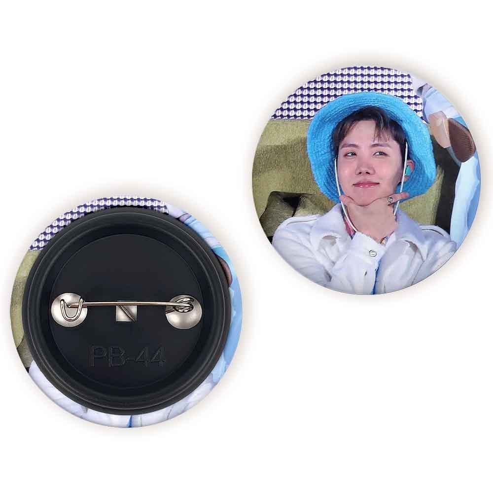 پیکسل 44 میلی متری جی هوپ J Hope گروه بی تی اس BTS خندالو با روکش سلفون حرارتی مات مخملی ضدخش و قطعه پشتی رنگی تولید شده است.پلاستیکی پشت پیکسل با سوزن یک تکه ثابت و بدون لغزش و جا به جایی، ایستایی بسیار بهتری نسبت به پشتی فلزی پیکسل دارند که این مهم در تولید این محصول نیز رعایت شده است.