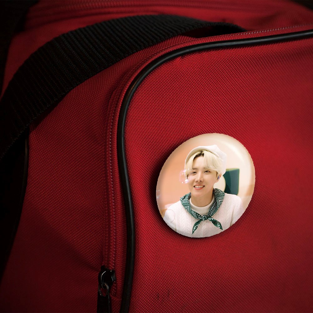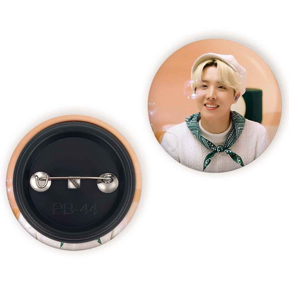 پیکسل 44 میلی متری جی هوپ J Hope گروه بی تی اس BTS خندالو با روکش سلفون حرارتی مات مخملی ضدخش و قطعه پشتی رنگی تولید شده است.پلاستیکی پشت پیکسل با سوزن یک تکه ثابت و بدون لغزش و جا به جایی، ایستایی بسیار بهتری نسبت به پشتی فلزی پیکسل دارند که این مهم در تولید این محصول نیز رعایت شده است.