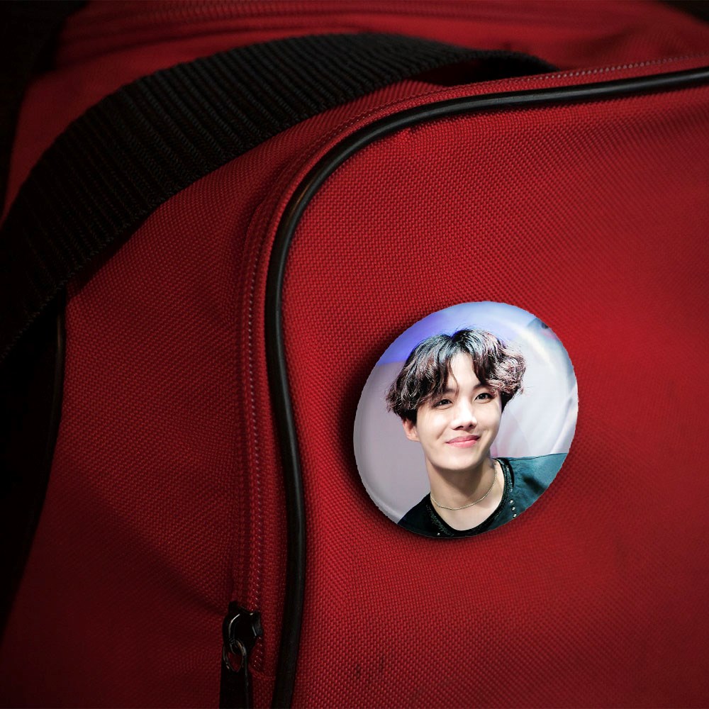 پیکسل 44 میلی متری جی هوپ J Hope گروه بی تی اس BTS خندالو با روکش سلفون حرارتی مات مخملی ضدخش و قطعه پشتی رنگی تولید شده است.پلاستیکی پشت پیکسل با سوزن یک تکه ثابت و بدون لغزش و جا به جایی، ایستایی بسیار بهتری نسبت به پشتی فلزی پیکسل دارند که این مهم در تولید این محصول نیز رعایت شده است.
