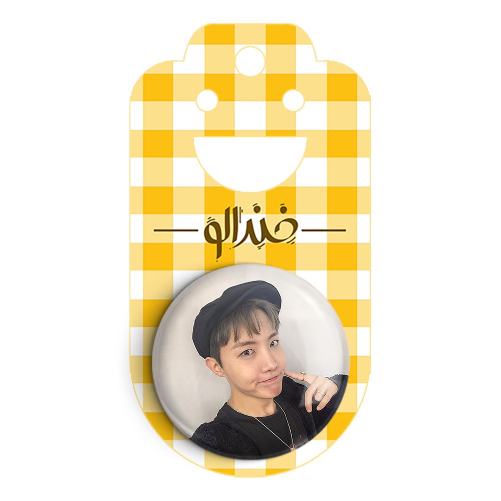 پیکسل 44 میلی متری جی هوپ J Hope گروه بی تی اس BTS خندالو با روکش سلفون حرارتی مات مخملی ضدخش و قطعه پشتی رنگی تولید شده است.پلاستیکی پشت پیکسل با سوزن یک تکه ثابت و بدون لغزش و جا به جایی، ایستایی بسیار بهتری نسبت به پشتی فلزی پیکسل دارند که این مهم در تولید این محصول نیز رعایت شده است.