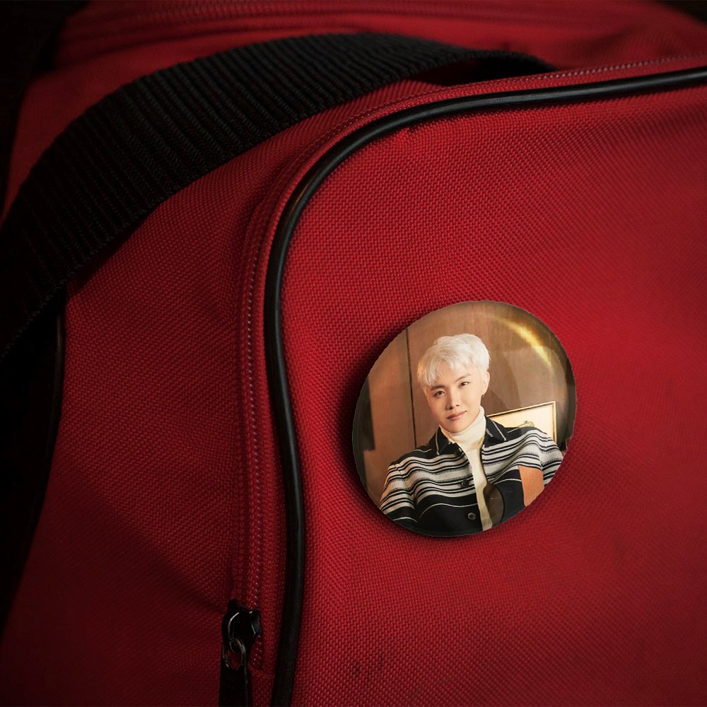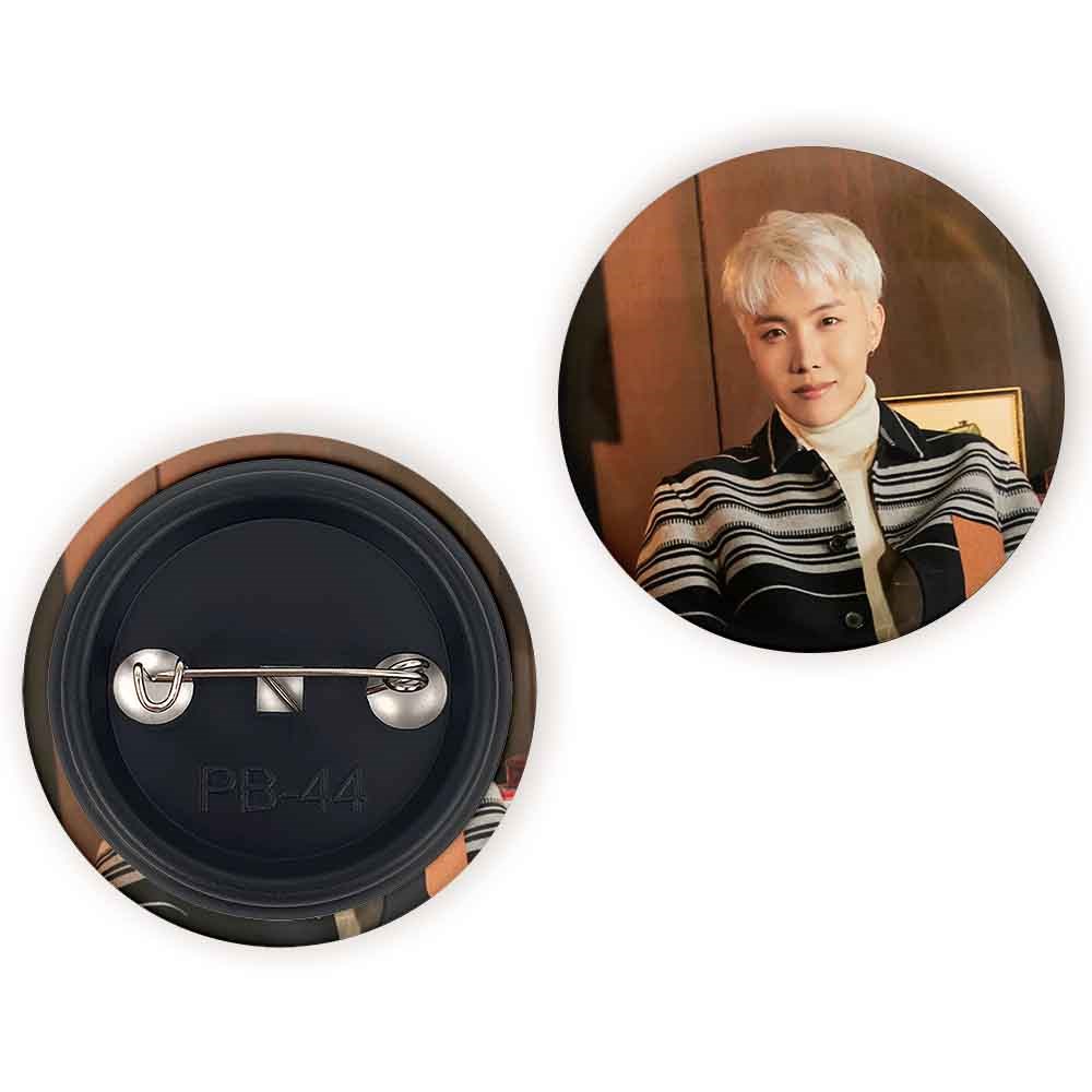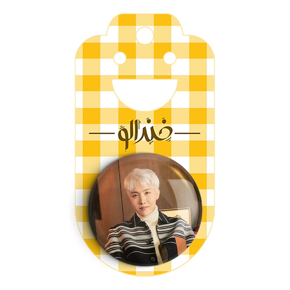 پیکسل 44 میلی متری جی هوپ J Hope گروه بی تی اس BTS خندالو با روکش سلفون حرارتی مات مخملی ضدخش و قطعه پشتی رنگی تولید شده است.پلاستیکی پشت پیکسل با سوزن یک تکه ثابت و بدون لغزش و جا به جایی، ایستایی بسیار بهتری نسبت به پشتی فلزی پیکسل دارند که این مهم در تولید این محصول نیز رعایت شده است.