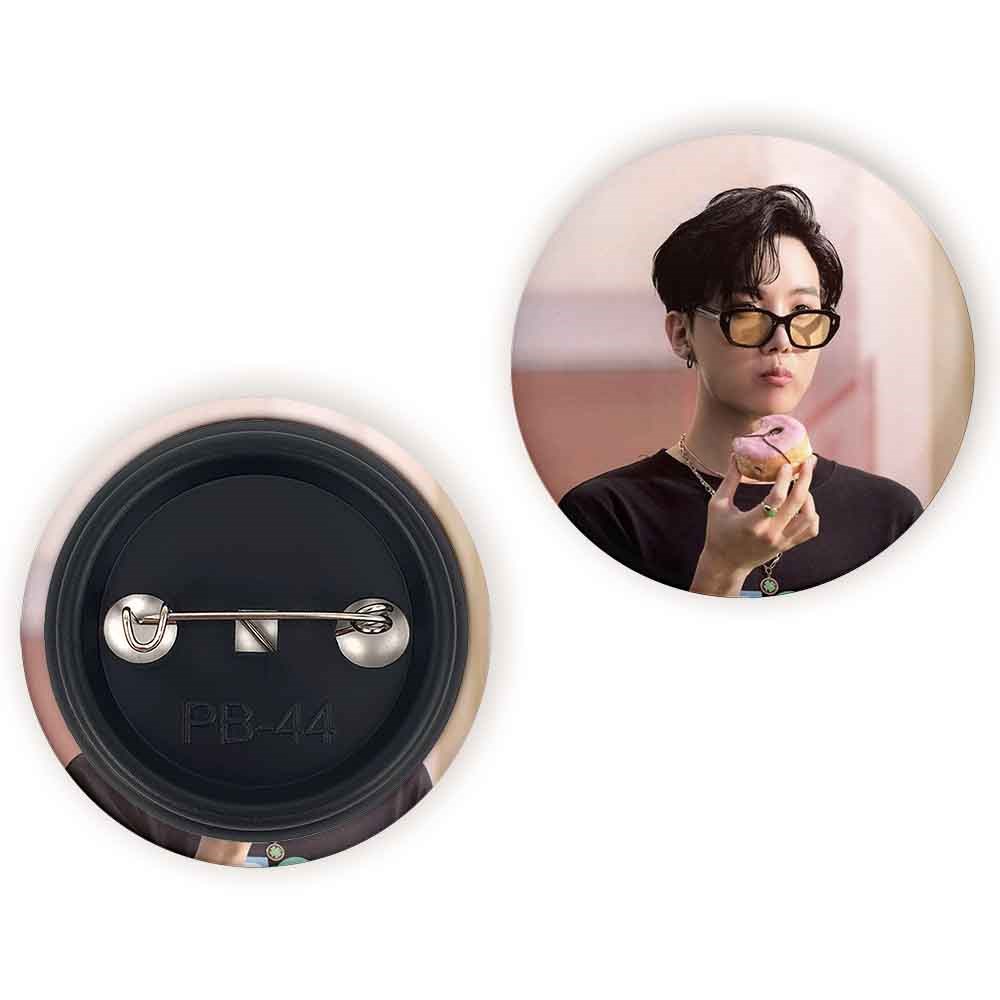 پیکسل 44 میلی متری جی هوپ J Hope گروه بی تی اس BTS خندالو با روکش سلفون حرارتی مات مخملی ضدخش و قطعه پشتی رنگی تولید شده است.پلاستیکی پشت پیکسل با سوزن یک تکه ثابت و بدون لغزش و جا به جایی، ایستایی بسیار بهتری نسبت به پشتی فلزی پیکسل دارند که این مهم در تولید این محصول نیز رعایت شده است.