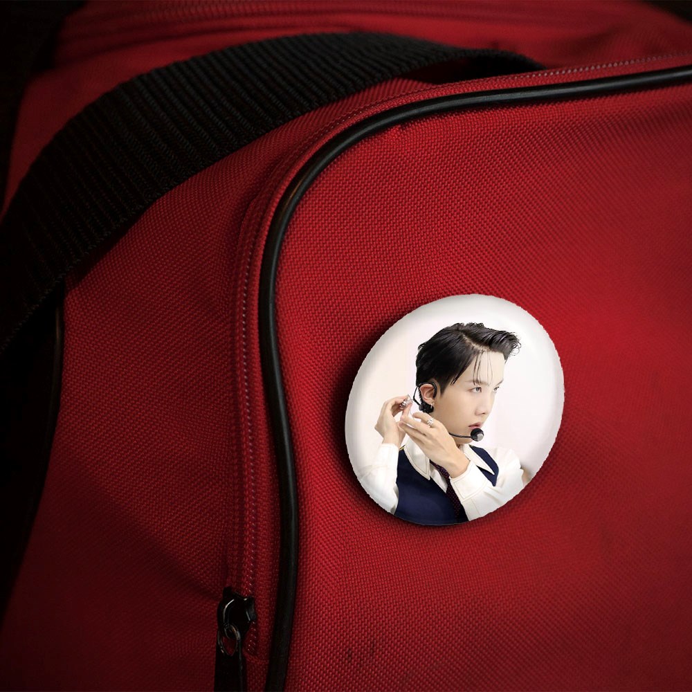 پیکسل 44 میلی متری جی هوپ J Hope گروه بی تی اس BTS خندالو با روکش سلفون حرارتی مات مخملی ضدخش و قطعه پشتی رنگی تولید شده است.پلاستیکی پشت پیکسل با سوزن یک تکه ثابت و بدون لغزش و جا به جایی، ایستایی بسیار بهتری نسبت به پشتی فلزی پیکسل دارند که این مهم در تولید این محصول نیز رعایت شده است.