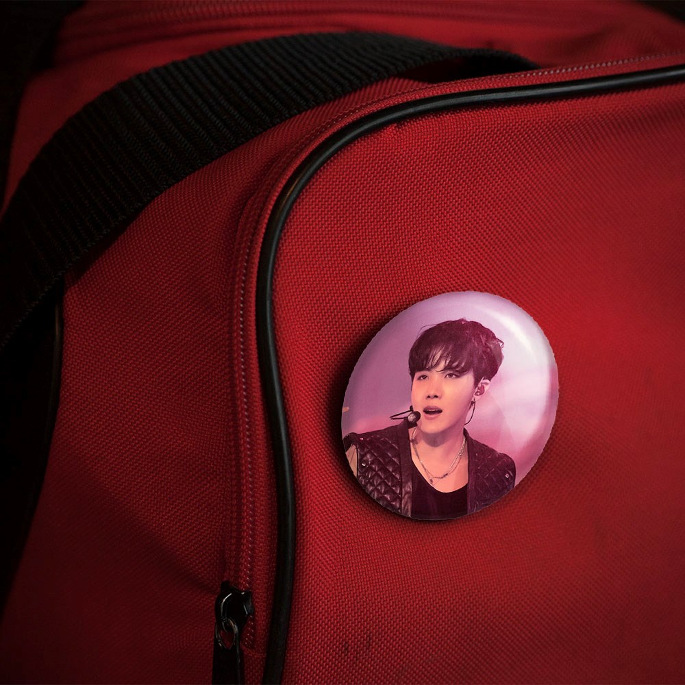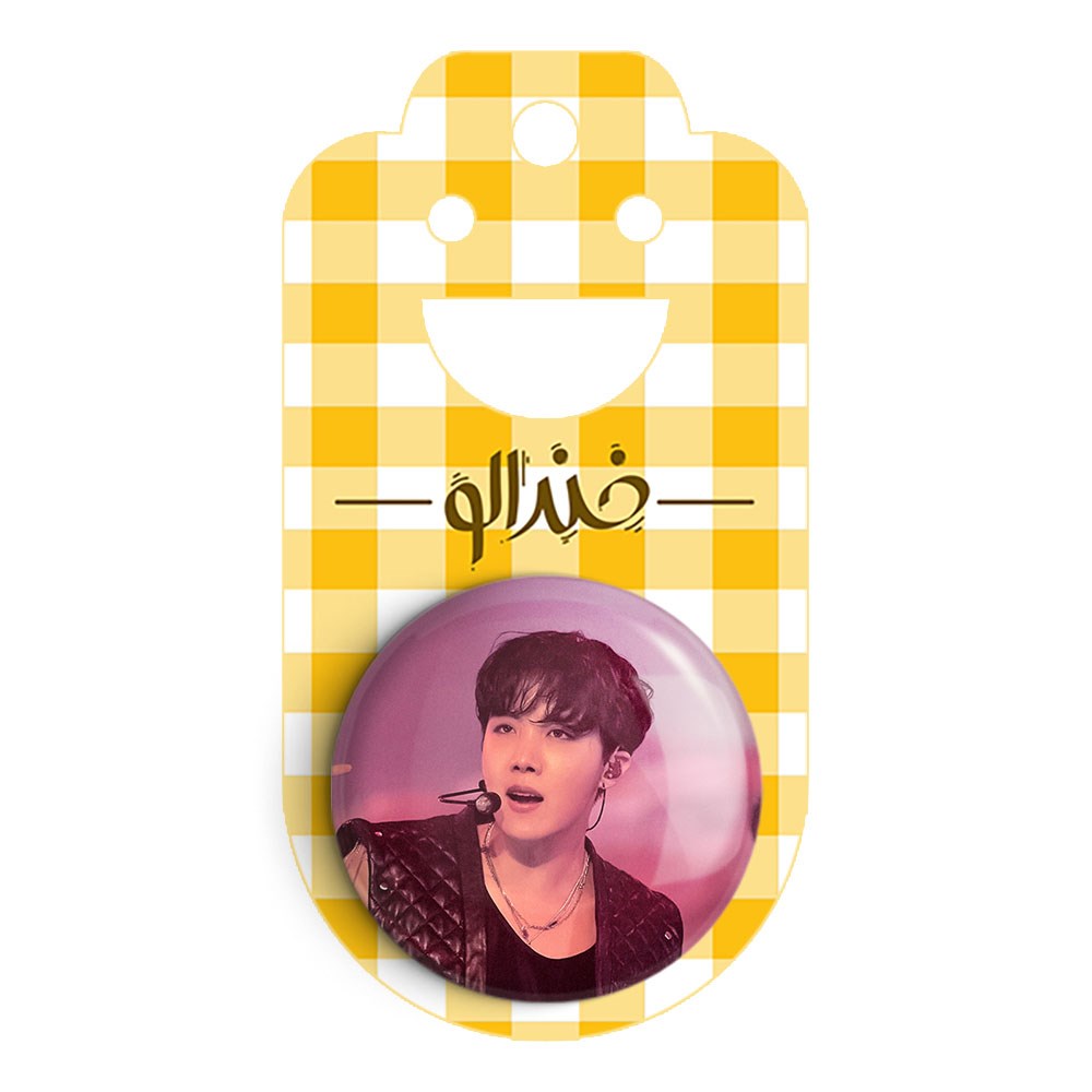پیکسل 44 میلی متری جی هوپ J Hope گروه بی تی اس BTS خندالو با روکش سلفون حرارتی مات مخملی ضدخش و قطعه پشتی رنگی تولید شده است.پلاستیکی پشت پیکسل با سوزن یک تکه ثابت و بدون لغزش و جا به جایی، ایستایی بسیار بهتری نسبت به پشتی فلزی پیکسل دارند که این مهم در تولید این محصول نیز رعایت شده است.