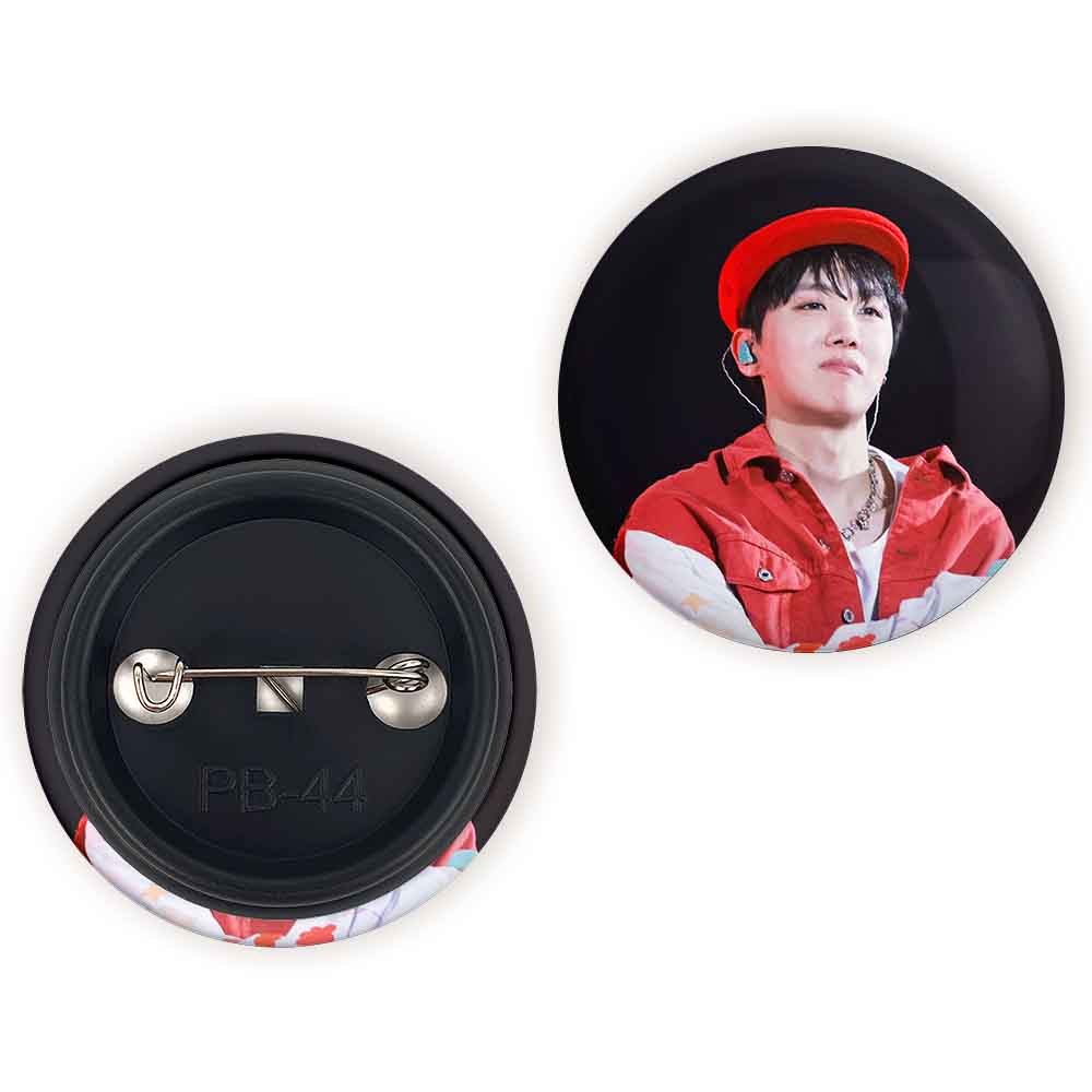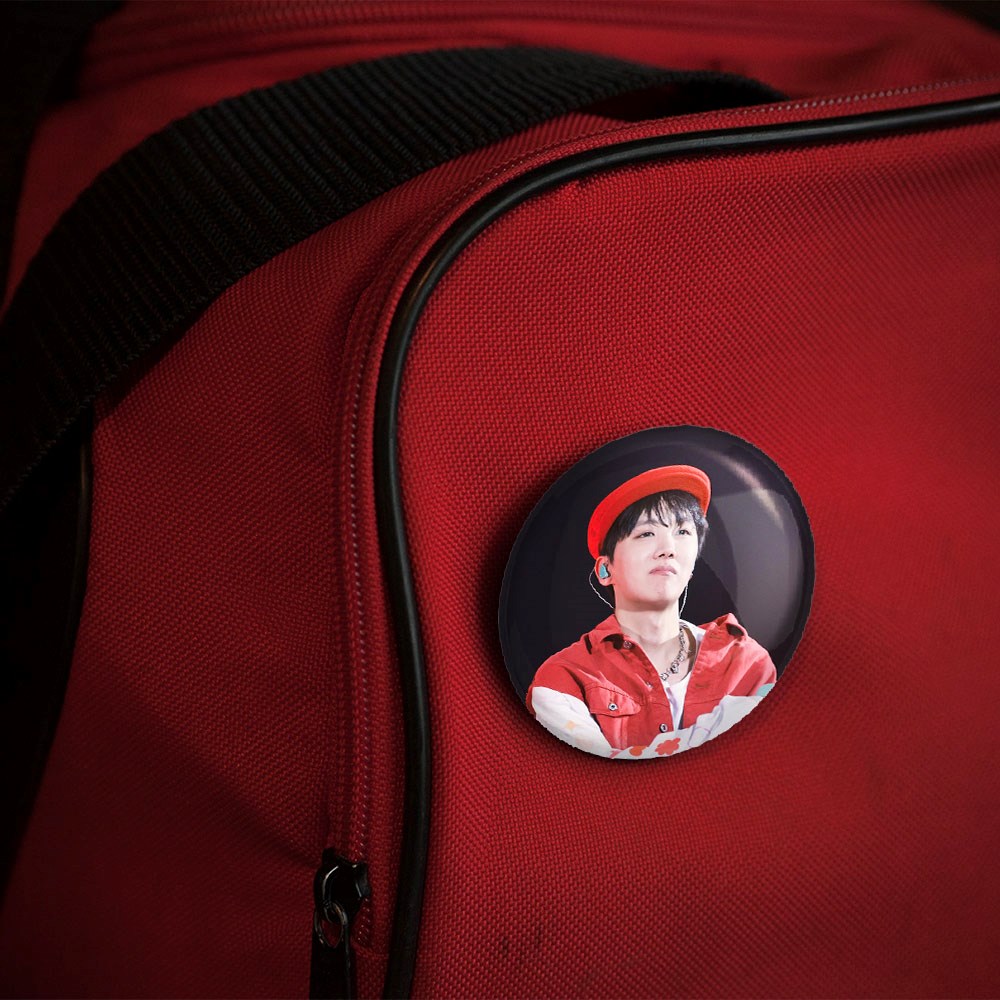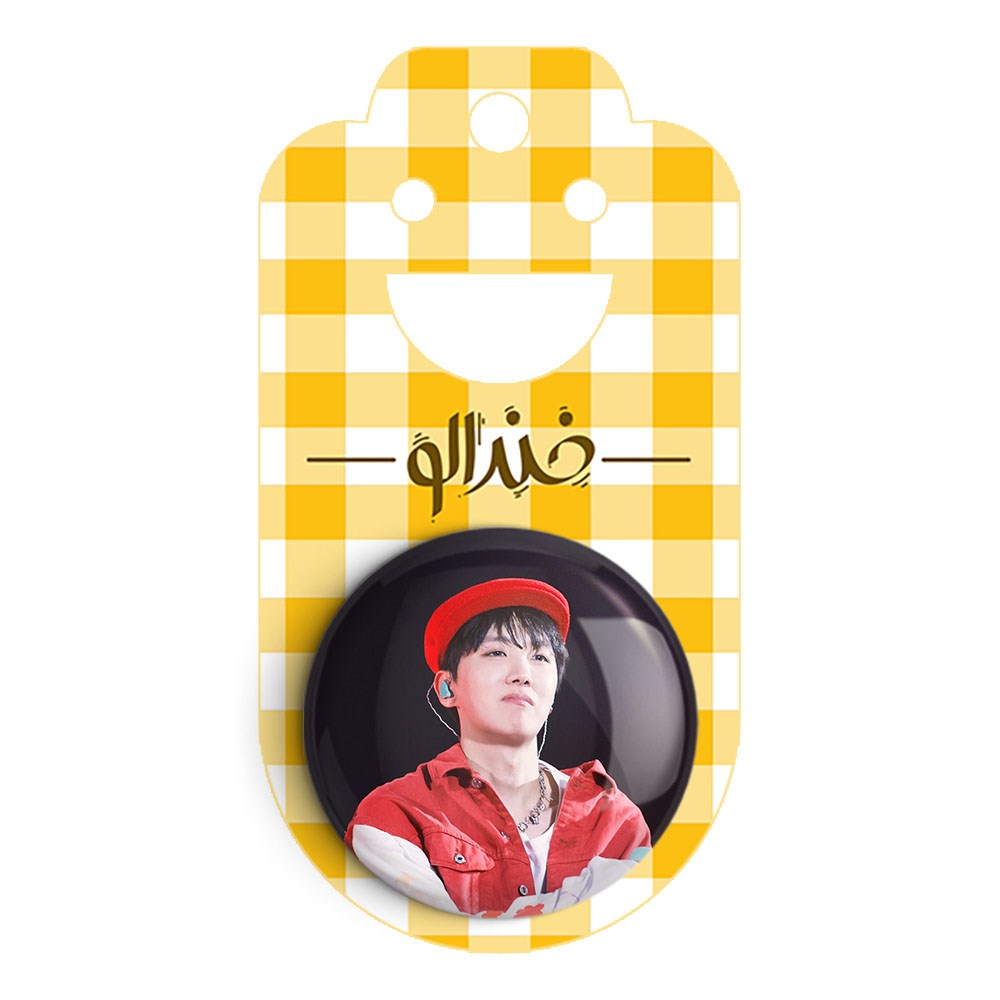 پیکسل 44 میلی متری جی هوپ J Hope گروه بی تی اس BTS خندالو با روکش سلفون حرارتی مات مخملی ضدخش و قطعه پشتی رنگی تولید شده است.پلاستیکی پشت پیکسل با سوزن یک تکه ثابت و بدون لغزش و جا به جایی، ایستایی بسیار بهتری نسبت به پشتی فلزی پیکسل دارند که این مهم در تولید این محصول نیز رعایت شده است.