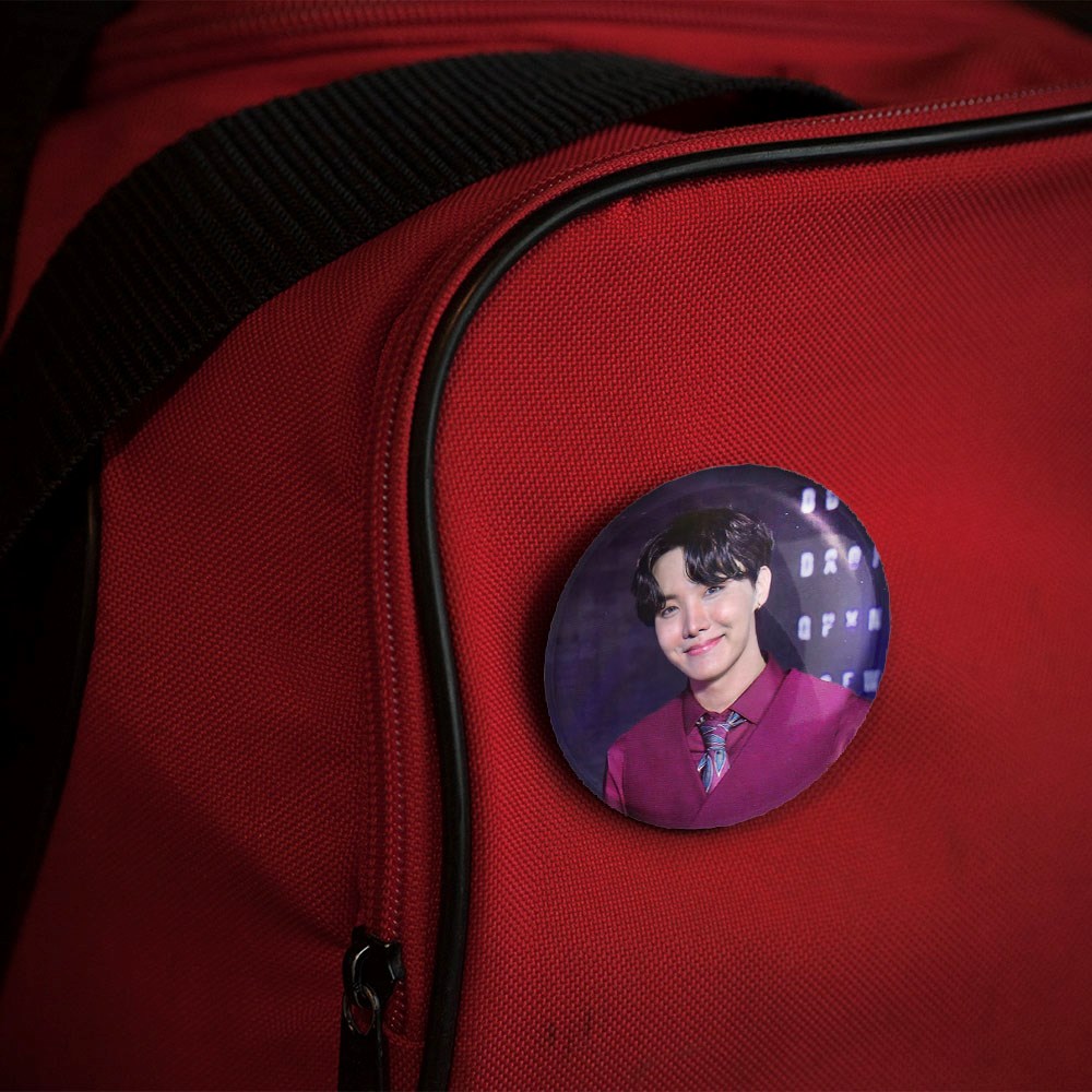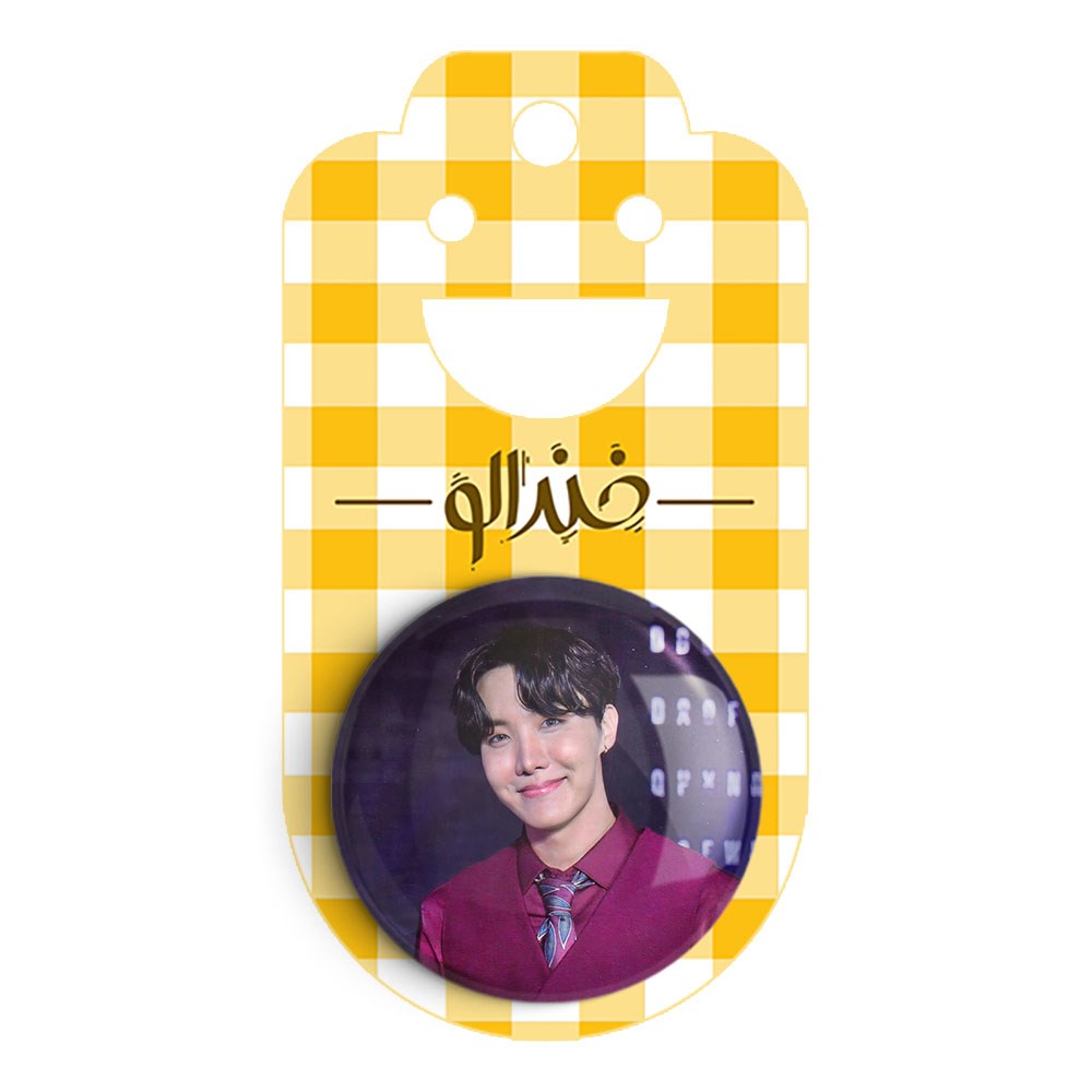 پیکسل 44 میلی متری جی هوپ J Hope گروه بی تی اس BTS خندالو با روکش سلفون حرارتی مات مخملی ضدخش و قطعه پشتی رنگی تولید شده است.پلاستیکی پشت پیکسل با سوزن یک تکه ثابت و بدون لغزش و جا به جایی، ایستایی بسیار بهتری نسبت به پشتی فلزی پیکسل دارند که این مهم در تولید این محصول نیز رعایت شده است.