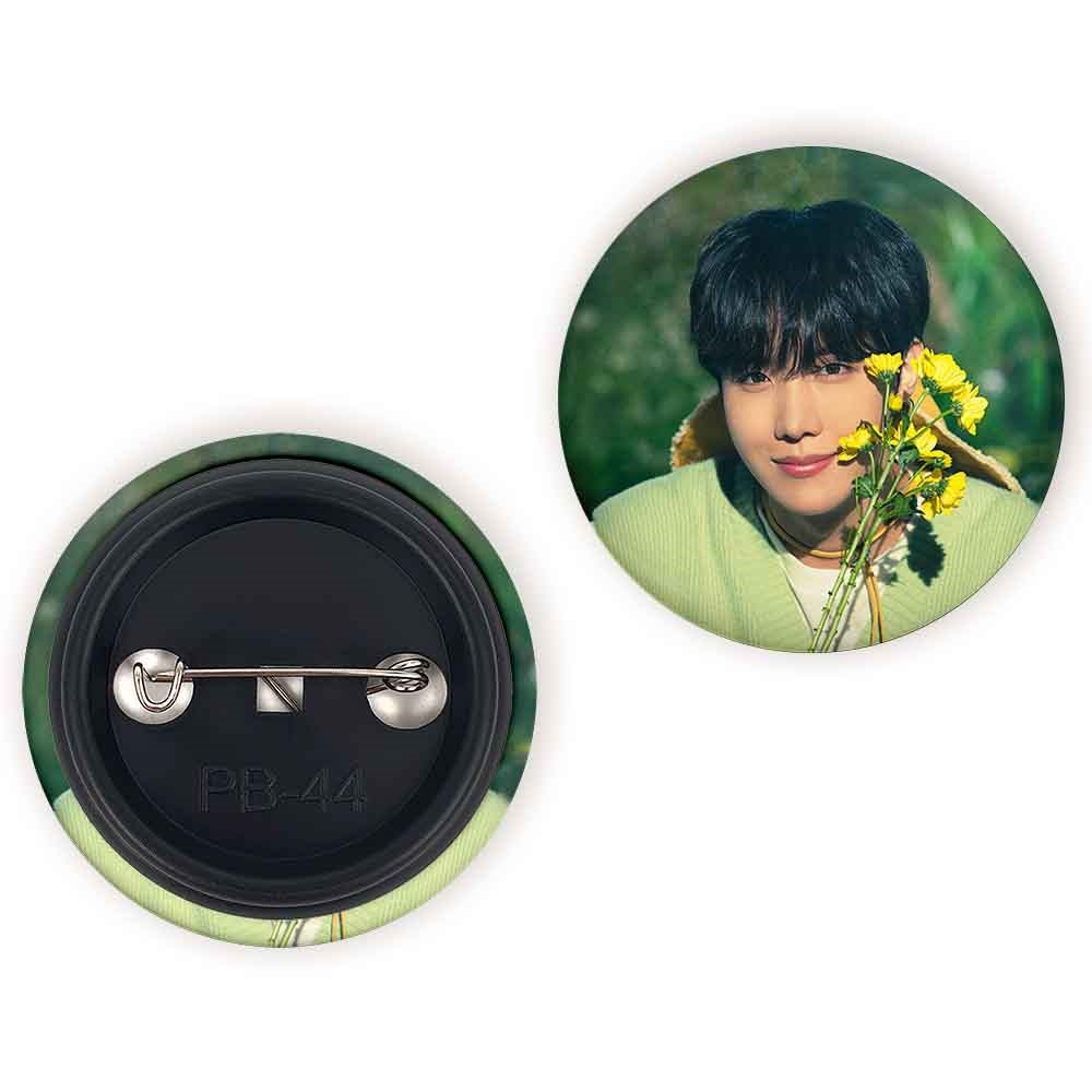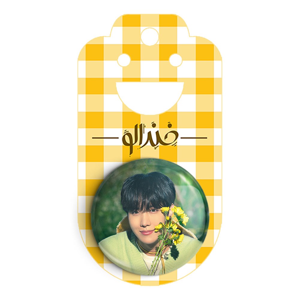 پیکسل 44 میلی متری جی هوپ J Hope گروه بی تی اس BTS خندالو با روکش سلفون حرارتی مات مخملی ضدخش و قطعه پشتی رنگی تولید شده است.پلاستیکی پشت پیکسل با سوزن یک تکه ثابت و بدون لغزش و جا به جایی، ایستایی بسیار بهتری نسبت به پشتی فلزی پیکسل دارند که این مهم در تولید این محصول نیز رعایت شده است.