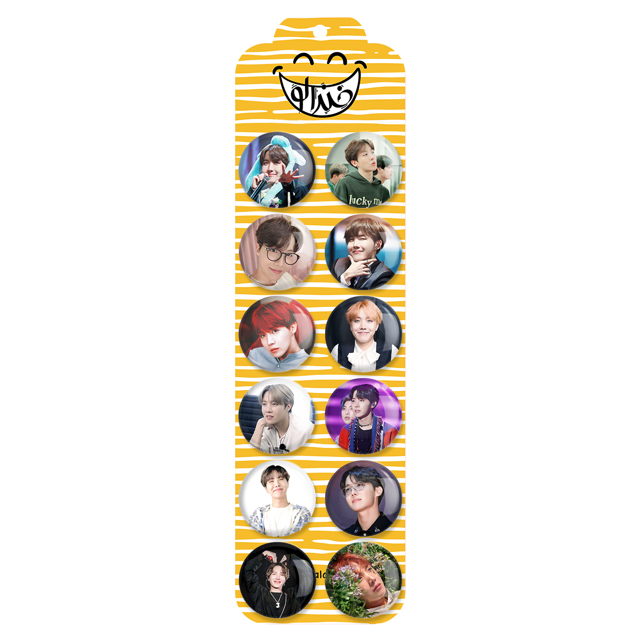 پک 12 عددی پیکسل خندالو طرح جی هوپ (Jhope) بی تی اس BTS با روکش سلفون حرارتی براق ضدخش و قطعه پشتی رنگی تولید شده است. قطعات پشتی از میان 6 رنگ سفید، مشکی، صورتی، زرد، آبی و قرمز که با توجه به نوع و رنگبندی طرح روی پیکسل انتخاب شده اند تولید می شود و در هر بسته بندی مطابق عکس محصول می باشد. قطعات پلاستیکی پشت پیکسل با سوزن یک تکه ثابت و بدون لغزش و جا به جایی، ایستایی بسیار بهتری نسبت به پشتی فلزی پیکسل دارند که این مهم در تولید این محصول نیز رعایت شده است.