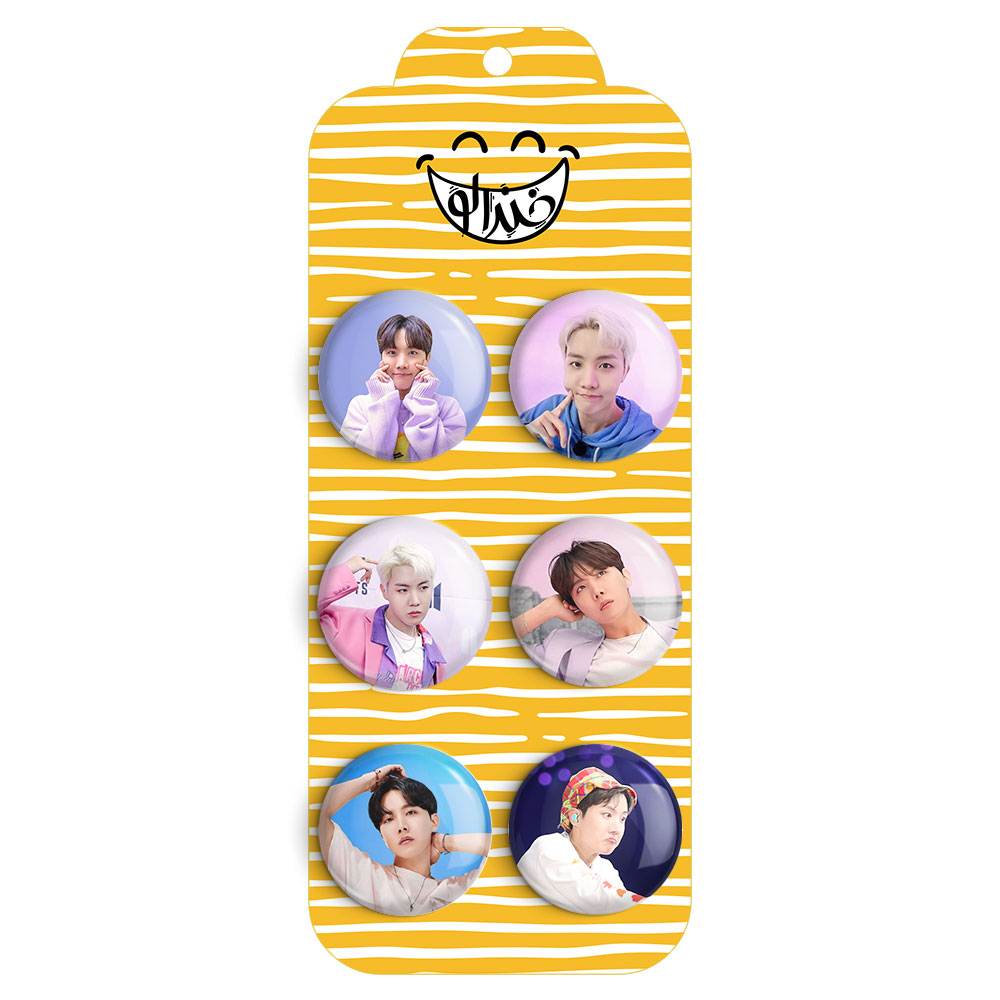 مجموعه 6 عددی پیکسل خندالو طرح جی هوپ (Jhope) گروه BTS با روکش سلفون حرارتی براق ضدخش و قطعه پشتی رنگی تولید شده است. قطعات پشتی از میان 6 رنگ سفید، مشکی، صورتی، زرد، آبی و قرمز که با توجه به نوع و رنگبندی طرح روی پیکسل انتخاب شده اند تولید می شود و در هر بسته بندی مطابق عکس محصول می باشد.