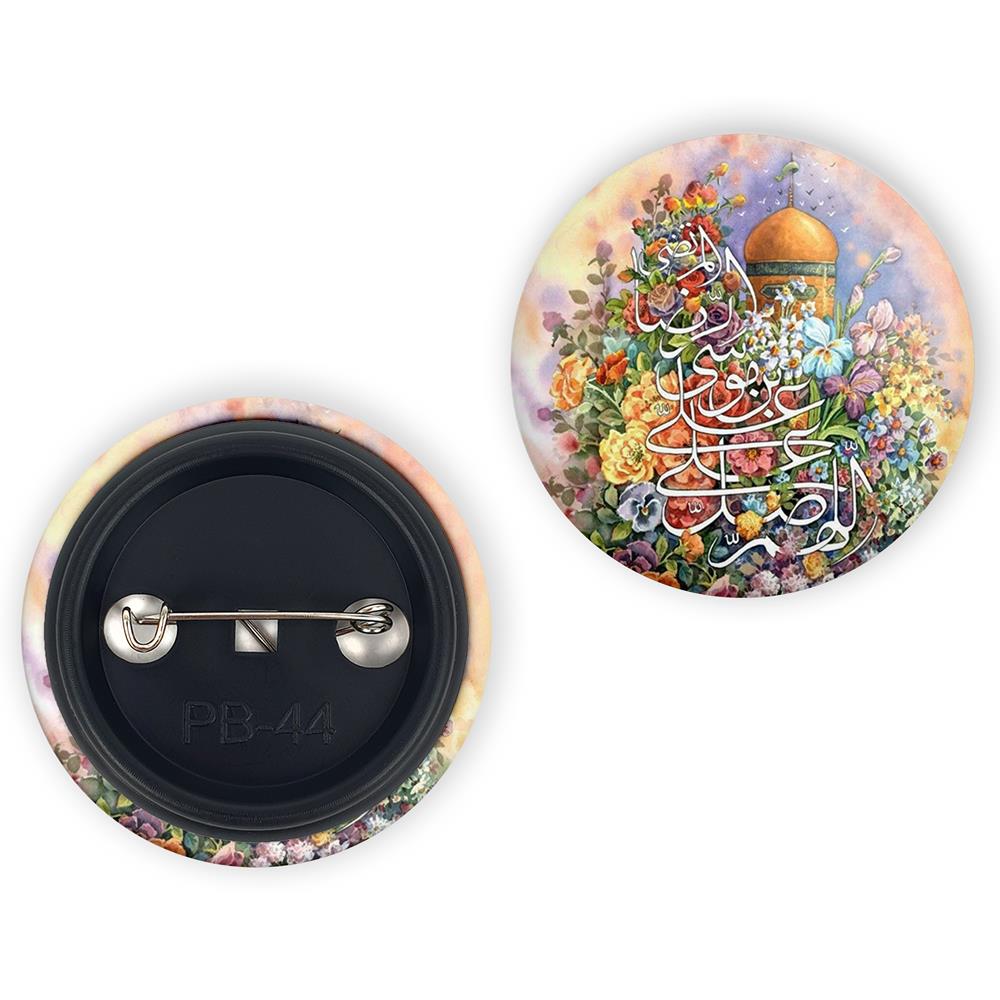 پیکسل 44 میلی متری حرم امام رضاخندالو با روکش سلفون حرارتی مات مخملی ضدخش و قطعه پشتی رنگی تولید شده است. قطعات پلاستیکی پشت پیکسل با سوزن یک تکه ثابت و بدون لغزش و جا به جایی، ایستایی بسیار بهتری نسبت به پشتی فلزی پیکسل دارند که این مهم در تولید این محصول نیز رعایت شده است.
