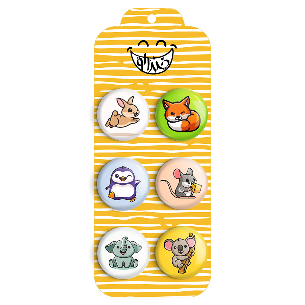 مجموعه 6 عددی پیکسل خندالو طرح حیوانات بامزه با روکش سلفون حرارتی براق ضدخش و قطعه پشتی رنگی تولید شده است. قطعات پشتی از میان 6 رنگ سفید، مشکی، صورتی، زرد، آبی و قرمز که با توجه به نوع و رنگبندی طرح روی پیکسل انتخاب شده اند تولید می شود و در هر بسته بندی مطابق عکس محصول می باشد.
