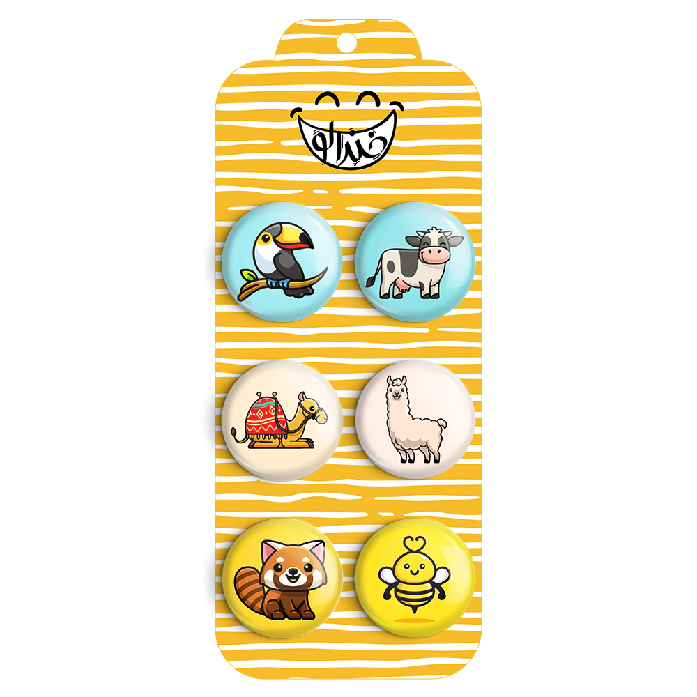 مجموعه 6 عددی پیکسل خندالو طرح حیوانات بامزه با روکش سلفون حرارتی براق ضدخش و قطعه پشتی رنگی تولید شده است. قطعات پشتی از میان 6 رنگ سفید، مشکی، صورتی، زرد، آبی و قرمز که با توجه به نوع و رنگبندی طرح روی پیکسل انتخاب شده اند تولید می شود و در هر بسته بندی مطابق عکس محصول می باشد.