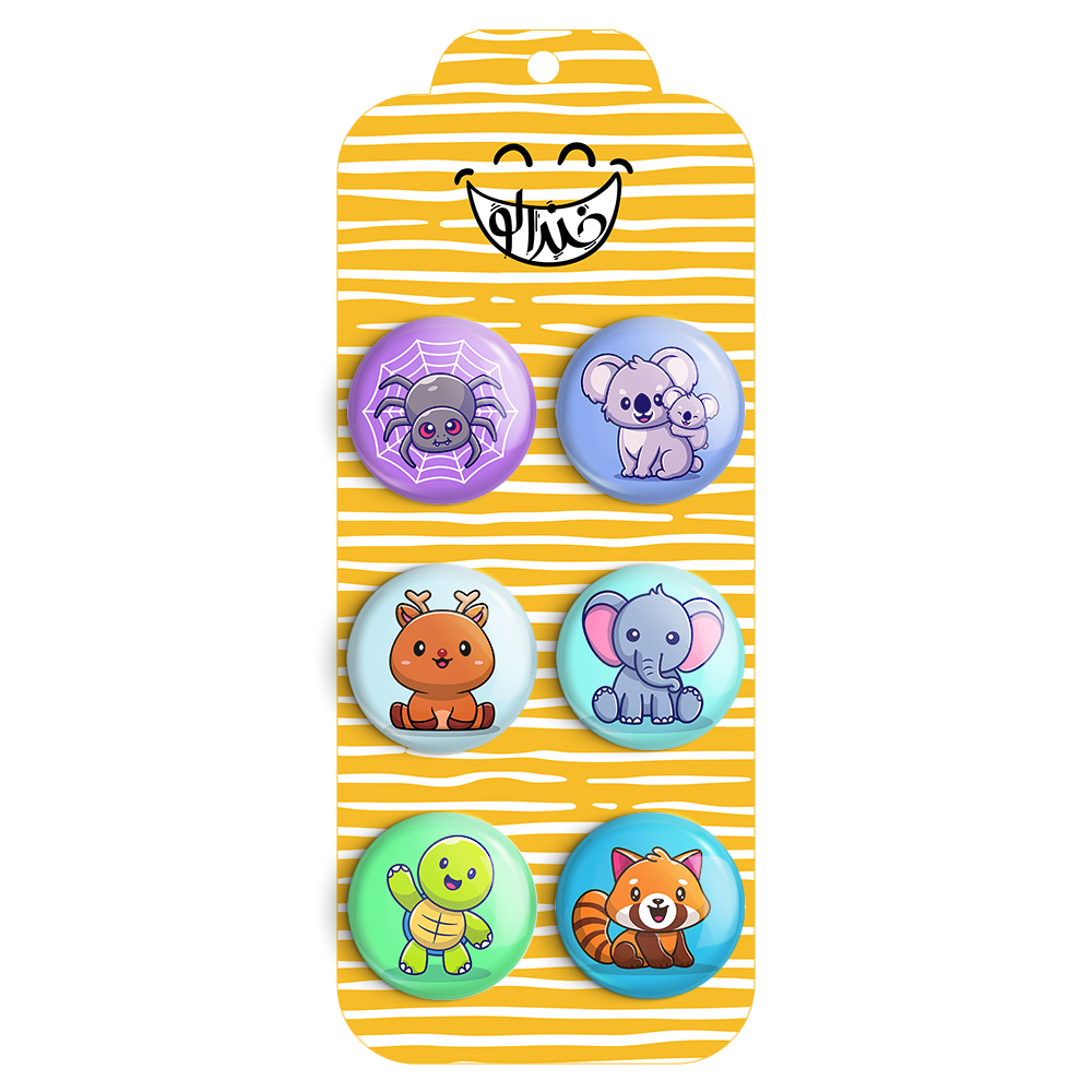 مجموعه 6 عددی پیکسل خندالو طرح حیوانات بامزه با روکش سلفون حرارتی براق ضدخش و قطعه پشتی رنگی تولید شده است. قطعات پشتی از میان 6 رنگ سفید، مشکی، صورتی، زرد، آبی و قرمز که با توجه به نوع و رنگبندی طرح روی پیکسل انتخاب شده اند تولید می شود و در هر بسته بندی مطابق عکس محصول می باشد.