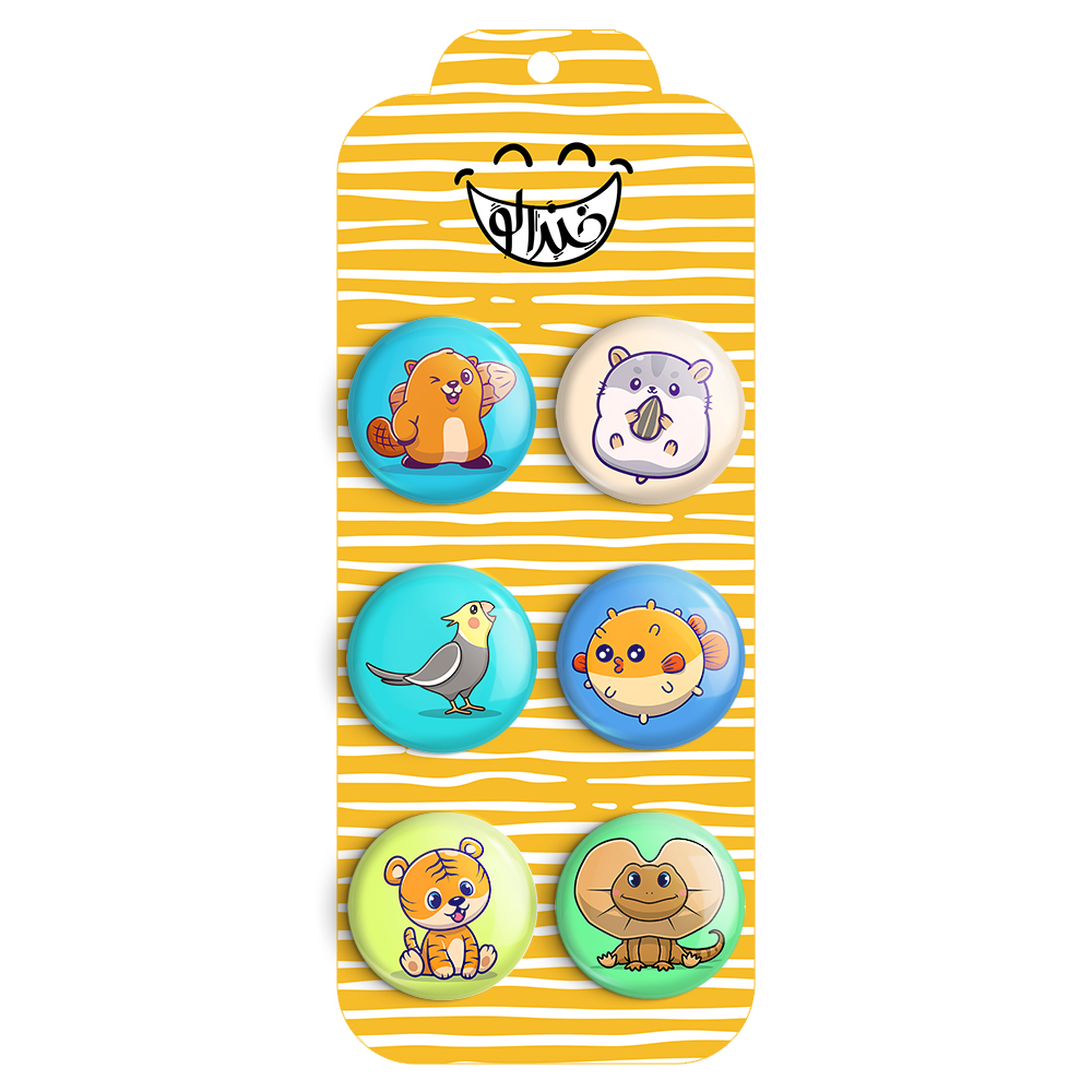 مجموعه 6 عددی پیکسل خندالو طرح حیوانات بامزه با روکش سلفون حرارتی براق ضدخش و قطعه پشتی رنگی تولید شده است. قطعات پشتی از میان 6 رنگ سفید، مشکی، صورتی، زرد، آبی و قرمز که با توجه به نوع و رنگبندی طرح روی پیکسل انتخاب شده اند تولید می شود و در هر بسته بندی مطابق عکس محصول می باشد.