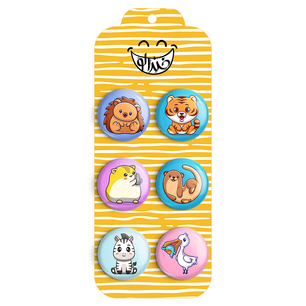 مجموعه 6 عددی پیکسل خندالو طرح حیوانات بامزه با روکش سلفون حرارتی براق ضدخش و قطعه پشتی رنگی تولید شده است. قطعات پشتی از میان 6 رنگ سفید، مشکی، صورتی، زرد، آبی و قرمز که با توجه به نوع و رنگبندی طرح روی پیکسل انتخاب شده اند تولید می شود و در هر بسته بندی مطابق عکس محصول می باشد.