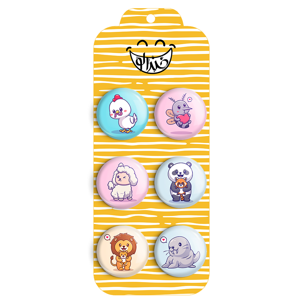 مجموعه 6 عددی پیکسل خندالو طرح حیوانات بامزه با روکش سلفون حرارتی براق ضدخش و قطعه پشتی رنگی تولید شده است. قطعات پشتی از میان 6 رنگ سفید، مشکی، صورتی، زرد، آبی و قرمز که با توجه به نوع و رنگبندی طرح روی پیکسل انتخاب شده اند تولید می شود و در هر بسته بندی مطابق عکس محصول می باشد.