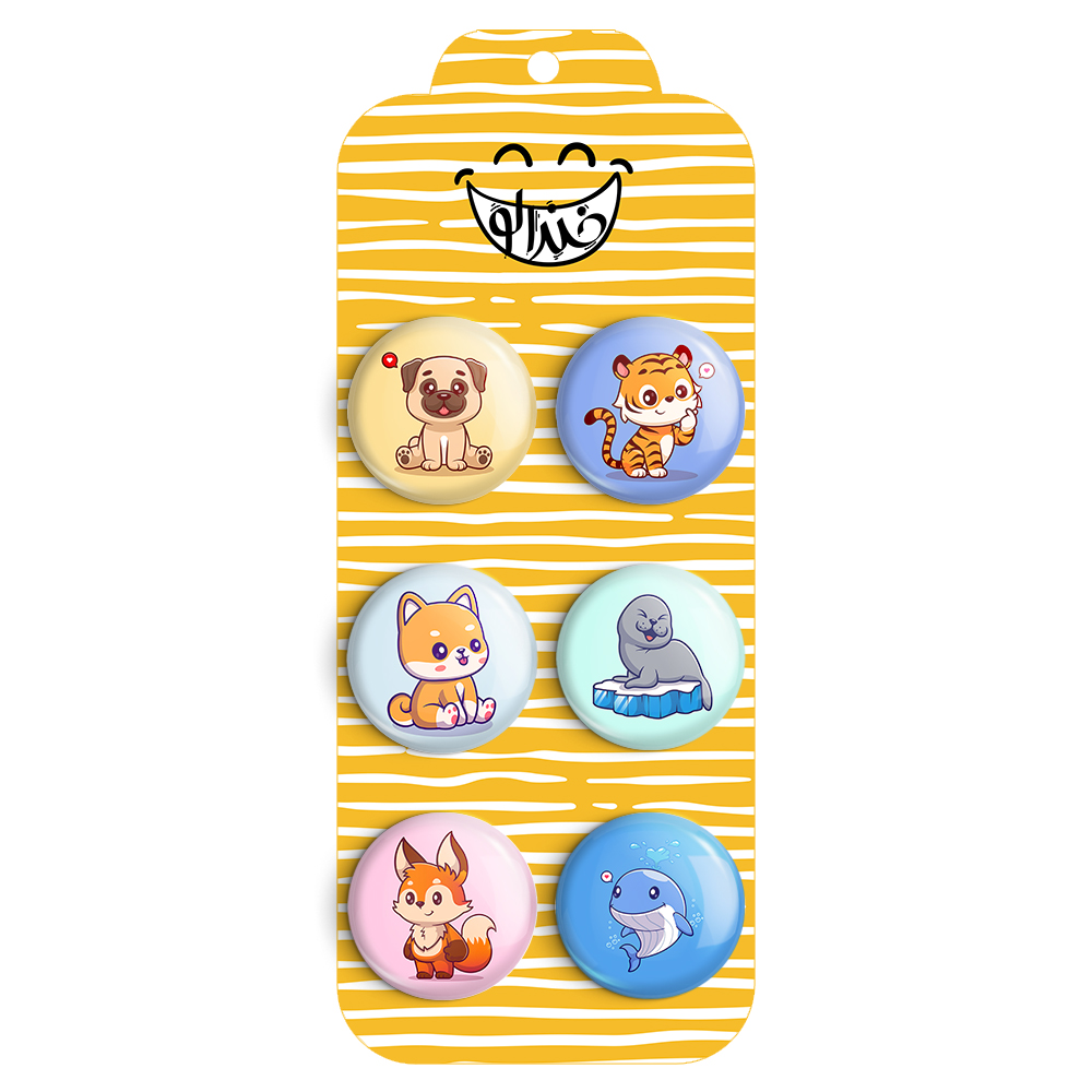 مجموعه 6 عددی پیکسل خندالو طرح حیوانات بامزه با روکش سلفون حرارتی براق ضدخش و قطعه پشتی رنگی تولید شده است. قطعات پشتی از میان 6 رنگ سفید، مشکی، صورتی، زرد، آبی و قرمز که با توجه به نوع و رنگبندی طرح روی پیکسل انتخاب شده اند تولید می شود و در هر بسته بندی مطابق عکس محصول می باشد.