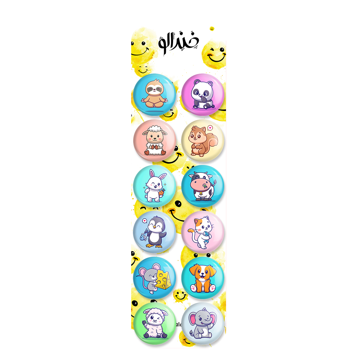 پک 12 عددی پیکسل خندالو طرح حیوانات بامزه با روکش سلفون حرارتی براق ضدخش و قطعه پشتی رنگی تولید شده است. قطعات پشتی از میان 6 رنگ سفید، مشکی، صورتی، زرد، آبی و قرمز که با توجه به نوع و رنگبندی طرح روی پیکسل انتخاب شده اند تولید می شود و در هر بسته بندی مطابق عکس محصول می باشد. قطعات پلاستیکی پشت پیکسل با سوزن یک تکه ثابت و بدون لغزش و جا به جایی، ایستایی بسیار بهتری نسبت به پشتی فلزی پیکسل دارند که این مهم در تولید این محصول نیز رعایت شده است.