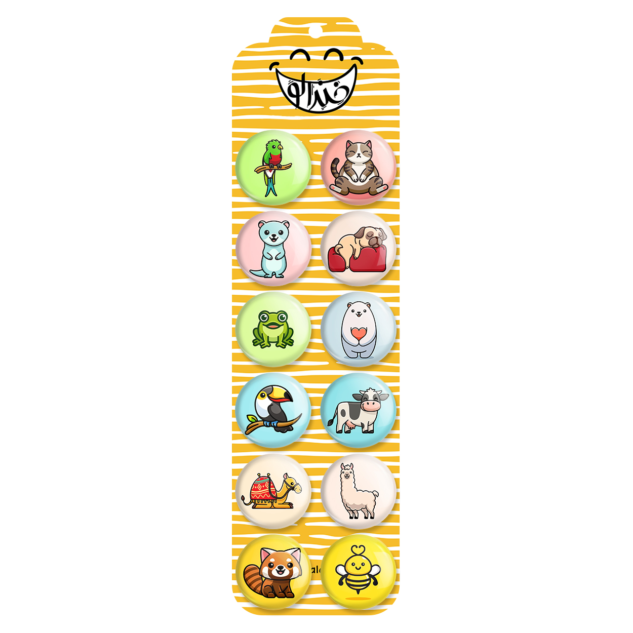 پک 12 عددی پیکسل خندالو طرح حیوانات بامزه با روکش سلفون حرارتی براق ضدخش و قطعه پشتی رنگی تولید شده است. قطعات پشتی از میان 6 رنگ سفید، مشکی، صورتی، زرد، آبی و قرمز که با توجه به نوع و رنگبندی طرح روی پیکسل انتخاب شده اند تولید می شود و در هر بسته بندی مطابق عکس محصول می باشد. قطعات پلاستیکی پشت پیکسل با سوزن یک تکه ثابت و بدون لغزش و جا به جایی، ایستایی بسیار بهتری نسبت به پشتی فلزی پیکسل دارند که این مهم در تولید این محصول نیز رعایت شده است. چاپ پیکسل طرح حیوانات بامزه بسته ۱۲ عددی نیز با دستگاه های استاندارد و با بهترین سطح کیفی صورت گرفته و طرح با شفافیتی مثال زدنی و با سلفونی بدون شکست نور بر روی پیکسل نقش بسته است.