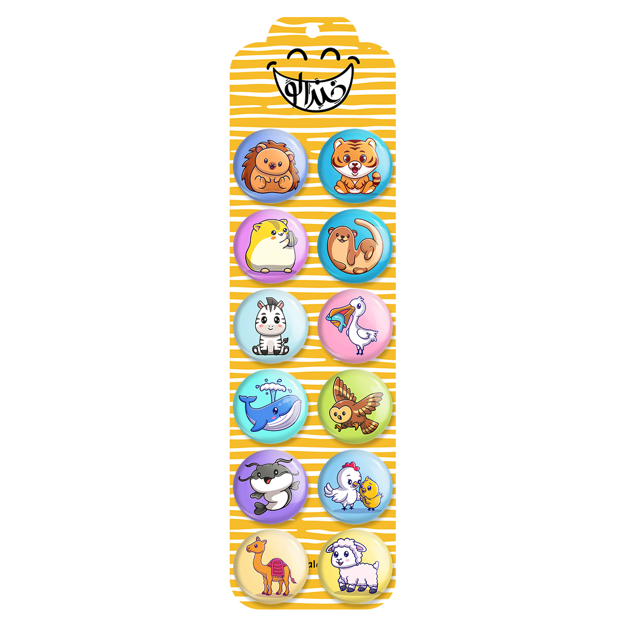 پک 12 عددی پیکسل خندالو طرح حیوانات بامزه با روکش سلفون حرارتی براق ضدخش و قطعه پشتی رنگی تولید شده است. قطعات پشتی از میان 6 رنگ سفید، مشکی، صورتی، زرد، آبی و قرمز که با توجه به نوع و رنگبندی طرح روی پیکسل انتخاب شده اند تولید می شود و در هر بسته بندی مطابق عکس محصول می باشد. قطعات پلاستیکی پشت پیکسل با سوزن یک تکه ثابت و بدون لغزش و جا به جایی، ایستایی بسیار بهتری نسبت به پشتی فلزی پیکسل دارند که این مهم در تولید این محصول نیز رعایت شده است.