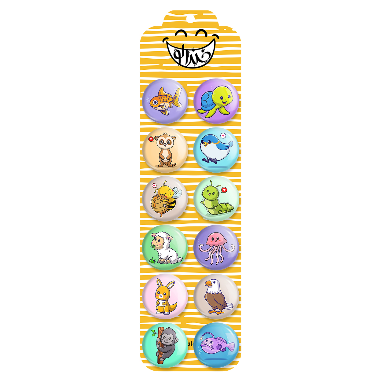 پک 12 عددی پیکسل خندالو طرح حیوانات بامزه با روکش سلفون حرارتی براق ضدخش و قطعه پشتی رنگی تولید شده است. قطعات پشتی از میان 6 رنگ سفید، مشکی، صورتی، زرد، آبی و قرمز که با توجه به نوع و رنگبندی طرح روی پیکسل انتخاب شده اند تولید می شود و در هر بسته بندی مطابق عکس محصول می باشد. قطعات پلاستیکی پشت پیکسل با سوزن یک تکه ثابت و بدون لغزش و جا به جایی، ایستایی بسیار بهتری نسبت به پشتی فلزی پیکسل دارند که این مهم در تولید این محصول نیز رعایت شده است.