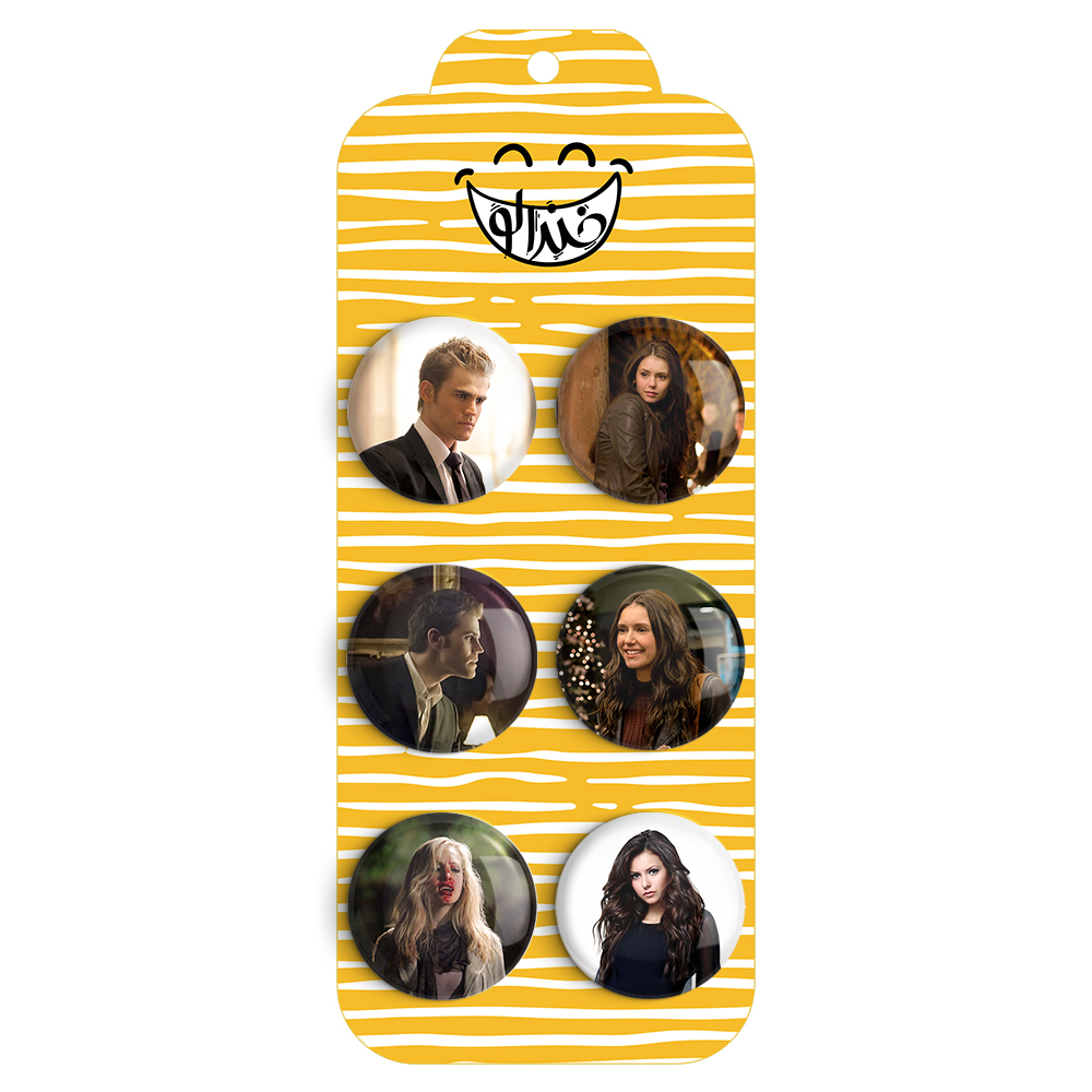مجموعه 6 عددی پیکسل خندالو طرح خاطرات خون آشام (The Vampire Diaries) با روکش سلفون حرارتی براق ضدخش و قطعه پشتی رنگی تولید شده است. قطعات پشتی از میان 6 رنگ سفید، مشکی، صورتی، زرد، آبی و قرمز که با توجه به نوع و رنگبندی طرح روی پیکسل انتخاب شده اند تولید می شود و در هر بسته بندی مطابق عکس محصول می باشد.