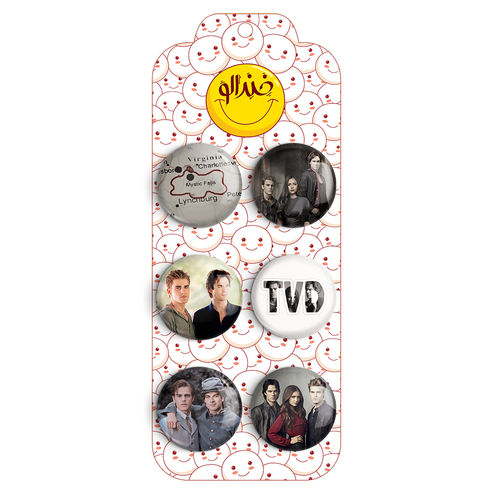 مجموعه 6 عددی پیکسل خندالو طرح خاطرات خون آشام (The Vampire Diaries) با روکش سلفون حرارتی براق ضدخش و قطعه پشتی رنگی تولید شده است. قطعات پشتی از میان 6 رنگ سفید، مشکی، صورتی، زرد، آبی و قرمز که با توجه به نوع و رنگبندی طرح روی پیکسل انتخاب شده اند تولید می شود و در هر بسته بندی مطابق عکس محصول می باشد.