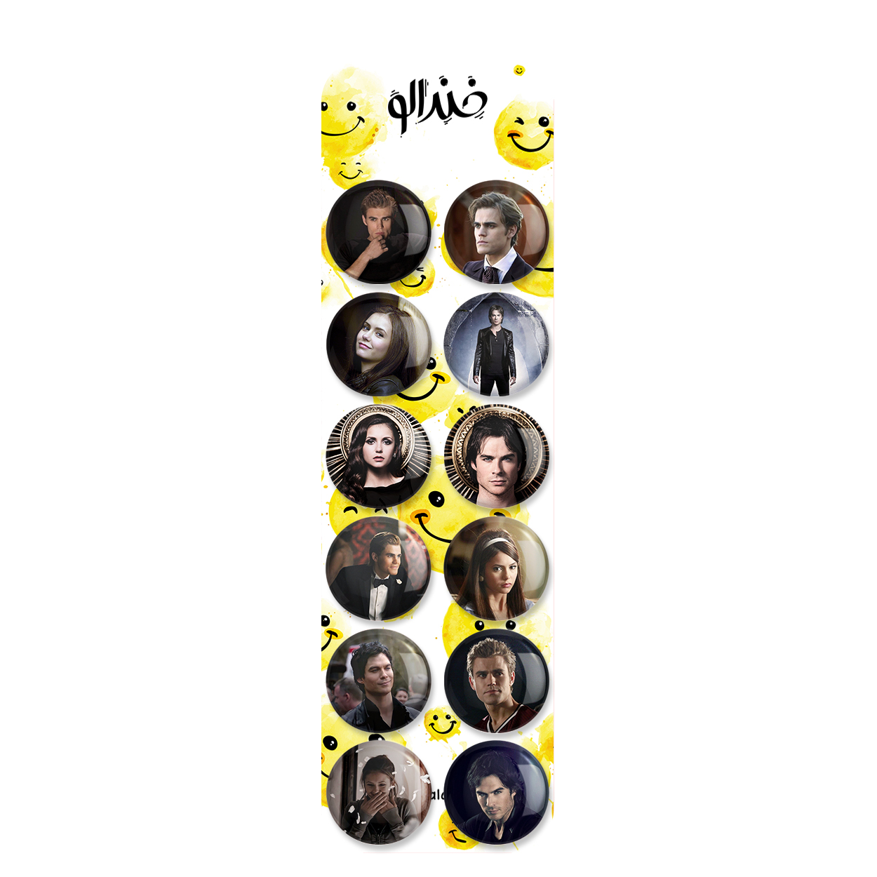 پک 12 عددی پیکسل خندالو طرح خاطرات خون آشام (The Vampire Diaries) با روکش سلفون حرارتی براق ضدخش و قطعه پشتی رنگی تولید شده است. قطعات پشتی از میان 6 رنگ سفید، مشکی، صورتی، زرد، آبی و قرمز که با توجه به نوع و رنگبندی طرح روی پیکسل انتخاب شده اند تولید می شود و در هر بسته بندی مطابق عکس محصول می باشد. قطعات پلاستیکی پشت پیکسل با سوزن یک تکه ثابت و بدون لغزش و جا به جایی، ایستایی بسیار بهتری نسبت به پشتی فلزی پیکسل دارند که این مهم در تولید این محصول نیز رعایت شده است.