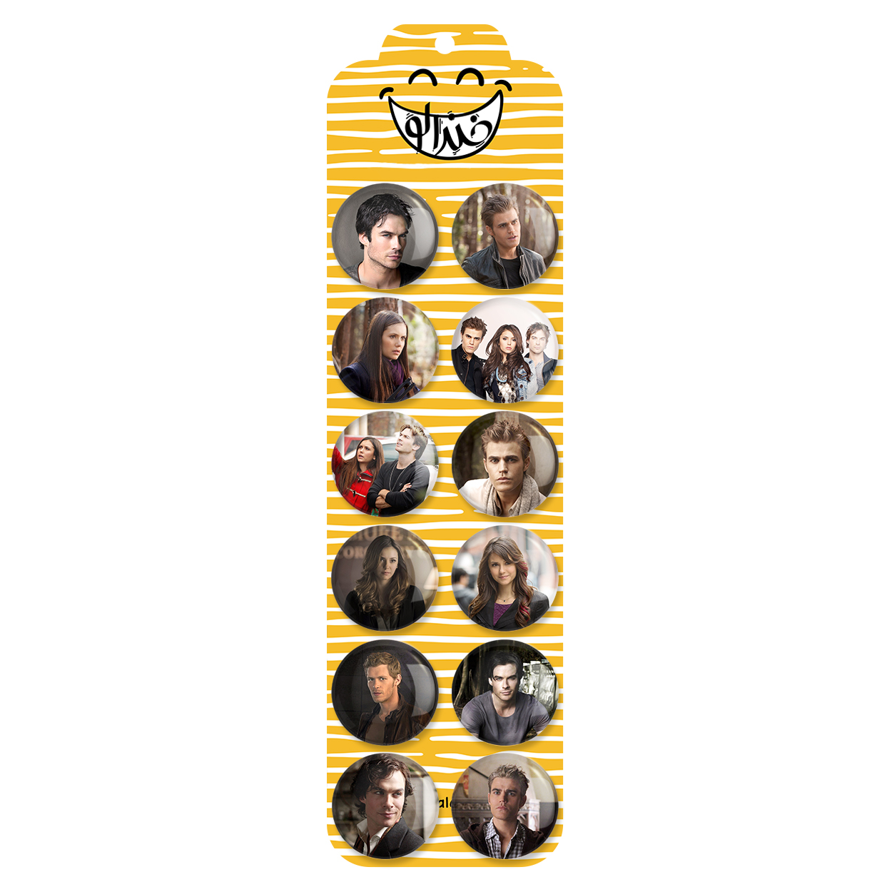 پک 12 عددی پیکسل خندالو طرح خاطرات خون آشام (The Vampire Diaries) با روکش سلفون حرارتی براق ضدخش و قطعه پشتی رنگی تولید شده است. قطعات پشتی از میان 6 رنگ سفید، مشکی، صورتی، زرد، آبی و قرمز که با توجه به نوع و رنگبندی طرح روی پیکسل انتخاب شده اند تولید می شود و در هر بسته بندی مطابق عکس محصول می باشد. قطعات پلاستیکی پشت پیکسل با سوزن یک تکه ثابت و بدون لغزش و جا به جایی، ایستایی بسیار بهتری نسبت به پشتی فلزی پیکسل دارند که این مهم در تولید این محصول نیز رعایت شده است.