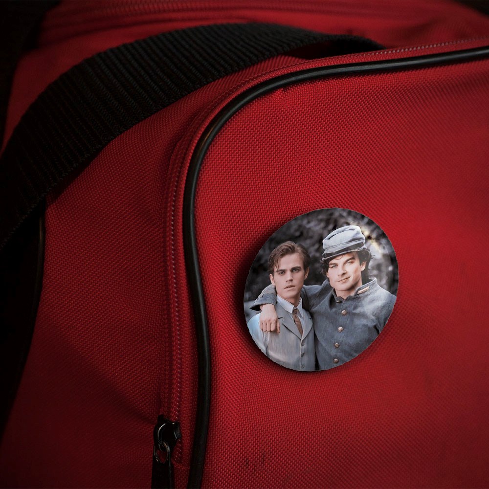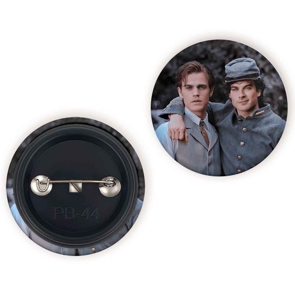 پیکسل 44 میلی متری خاطرات یک خون آشام The Vampire Diaries خندالو با روکش سلفون حرارتی مات مخملی ضدخش و قطعه پشتی رنگی تولید شده است.پلاستیکی پشت پیکسل با سوزن یک تکه ثابت و بدون لغزش و جا به جایی، ایستایی بسیار بهتری نسبت به پشتی فلزی پیکسل دارند که این مهم در تولید این محصول نیز رعایت شده است.