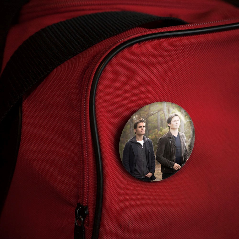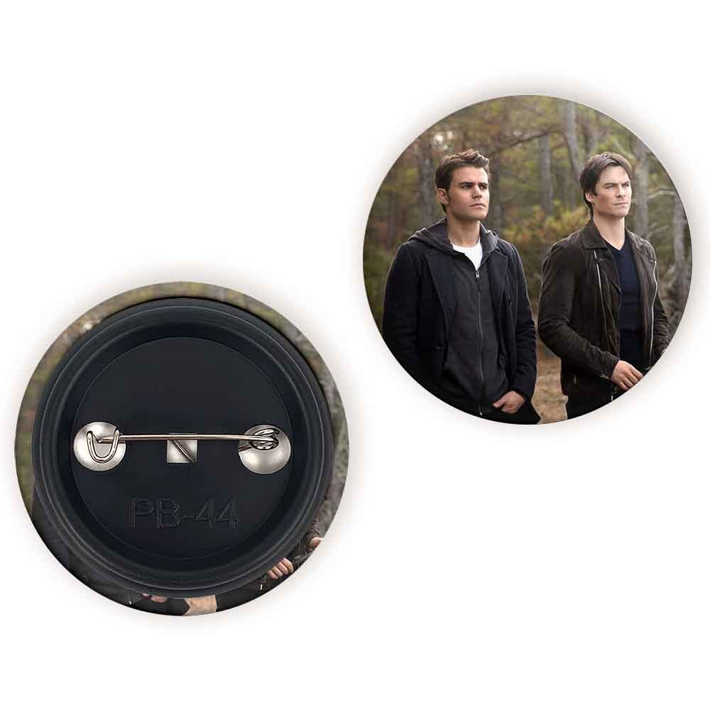 پیکسل 44 میلی متری خاطرات یک خون آشام The Vampire Diaries خندالو با روکش سلفون حرارتی مات مخملی ضدخش و قطعه پشتی رنگی تولید شده است.پلاستیکی پشت پیکسل با سوزن یک تکه ثابت و بدون لغزش و جا به جایی، ایستایی بسیار بهتری نسبت به پشتی فلزی پیکسل دارند که این مهم در تولید این محصول نیز رعایت شده است.