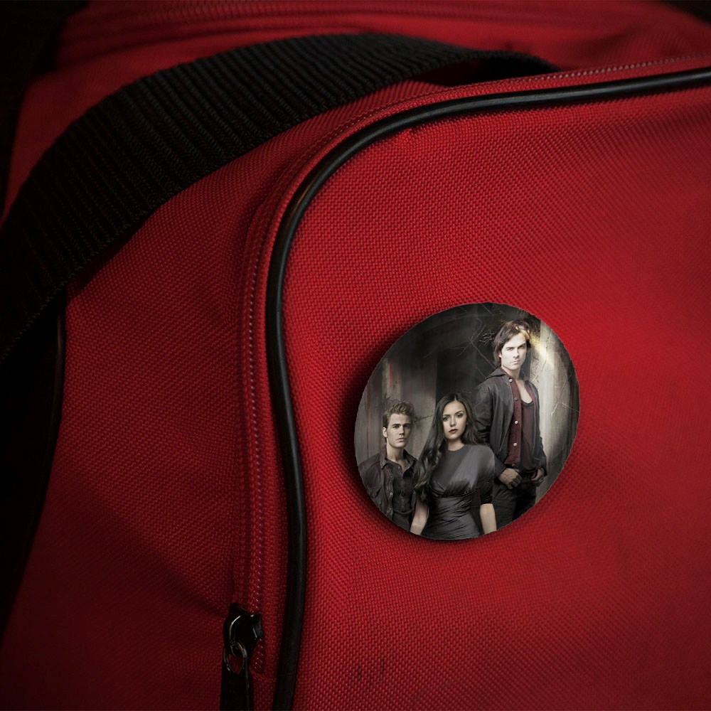 پیکسل 44 میلی متری خاطرات یک خون آشام The Vampire Diaries خندالو با روکش سلفون حرارتی مات مخملی ضدخش و قطعه پشتی رنگی تولید شده است.پلاستیکی پشت پیکسل با سوزن یک تکه ثابت و بدون لغزش و جا به جایی، ایستایی بسیار بهتری نسبت به پشتی فلزی پیکسل دارند که این مهم در تولید این محصول نیز رعایت شده است.