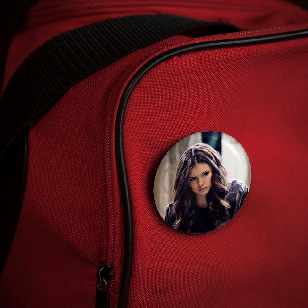 پیکسل 44 میلی متری خاطرات یک خون آشام The Vampire Diaries خندالو با روکش سلفون حرارتی مات مخملی ضدخش و قطعه پشتی رنگی تولید شده است.پلاستیکی پشت پیکسل با سوزن یک تکه ثابت و بدون لغزش و جا به جایی، ایستایی بسیار بهتری نسبت به پشتی فلزی پیکسل دارند که این مهم در تولید این محصول نیز رعایت شده است.