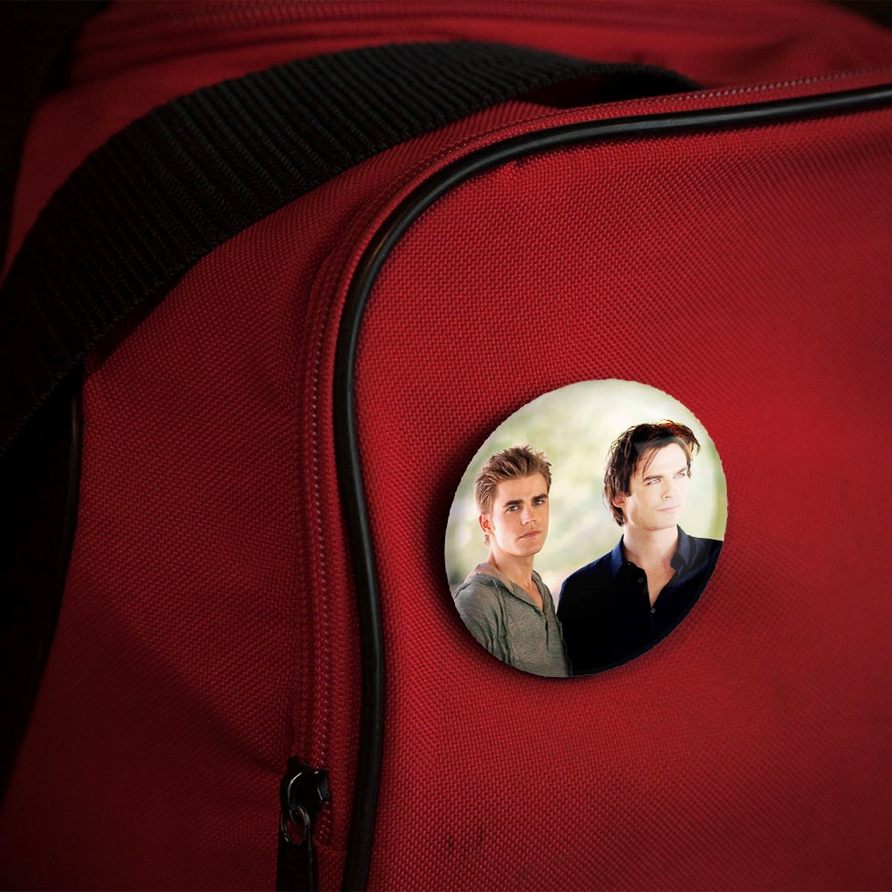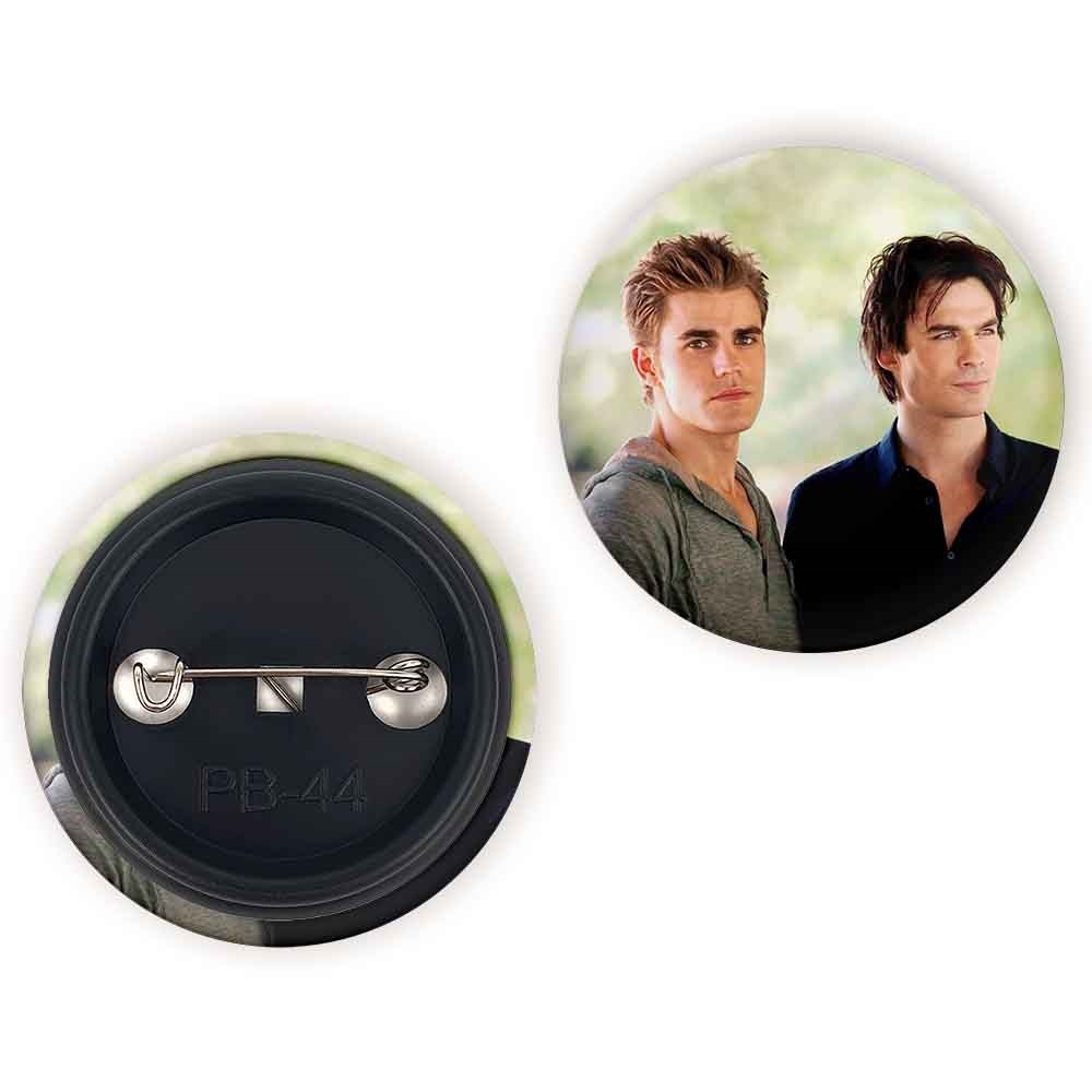 پیکسل 44 میلی متری خاطرات یک خون آشام The Vampire Diaries خندالو با روکش سلفون حرارتی مات مخملی ضدخش و قطعه پشتی رنگی تولید شده است.پلاستیکی پشت پیکسل با سوزن یک تکه ثابت و بدون لغزش و جا به جایی، ایستایی بسیار بهتری نسبت به پشتی فلزی پیکسل دارند که این مهم در تولید این محصول نیز رعایت شده است.
