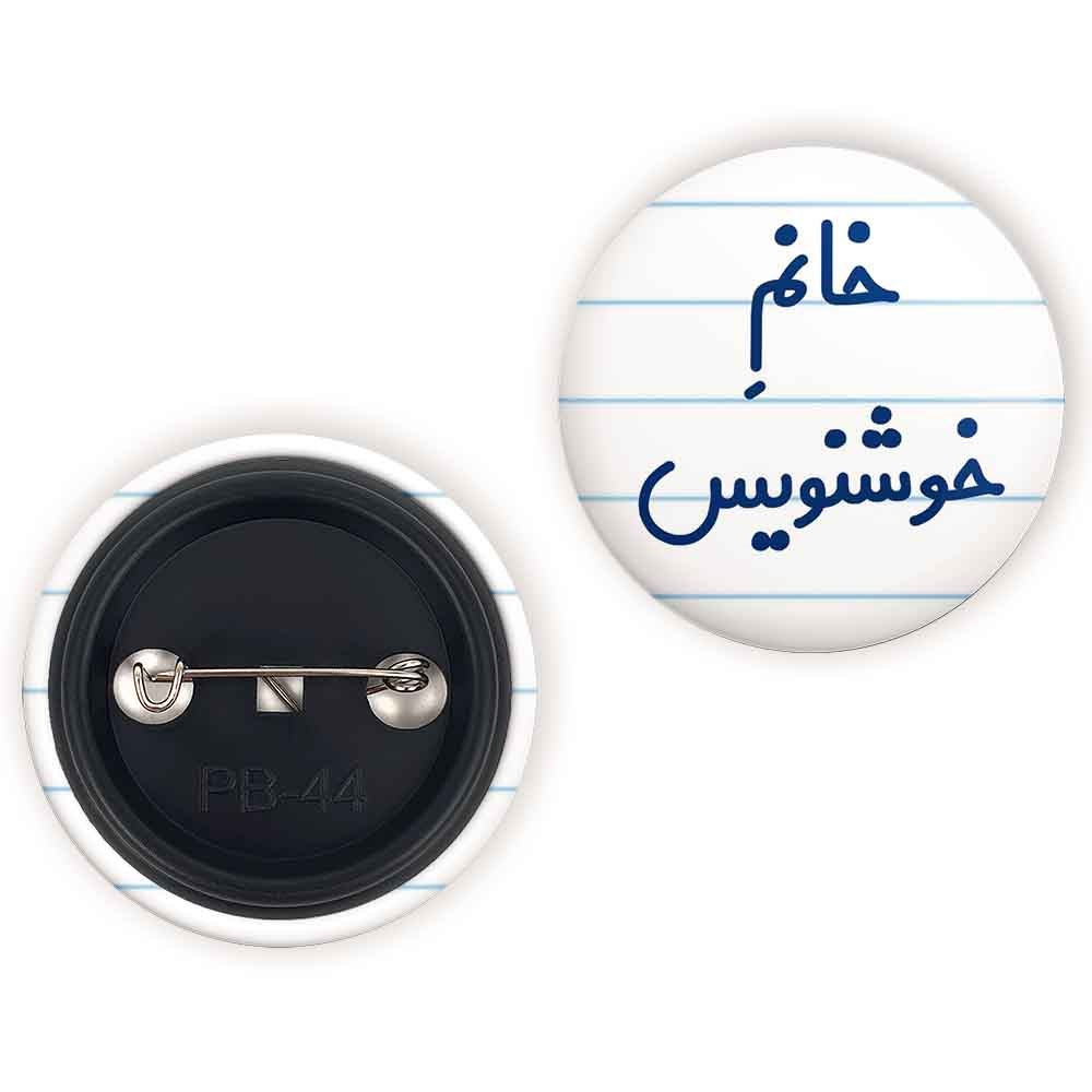 پیکسل 44 میلی متری خانم خوشنویس خندالو با روکش سلفون حرارتی مات مخملی ضدخش و قطعه پشتی رنگی تولید شده است. قطعات پلاستیکی پشت پیکسل با سوزن یک تکه ثابت و بدون لغزش و جا به جایی، ایستایی بسیار بهتری نسبت به پشتی فلزی پیکسل دارند که این مهم در تولید این محصول نیز رعایت شده است. چاپ پیکسل خانم خوشنویس نیز با دستگاه های استاندارد و با بهترین سطح کیفی صورت گرفته و طرح با شفافیتی مثال زدنی و با سلفونی بدون شکست نور بر روی پیکسل نقش بسته است. همچنین بسته بندی جذاب و مینیمال پیکسل خانم خوشنویس ، آنها را مناسب هدیه کرده است.