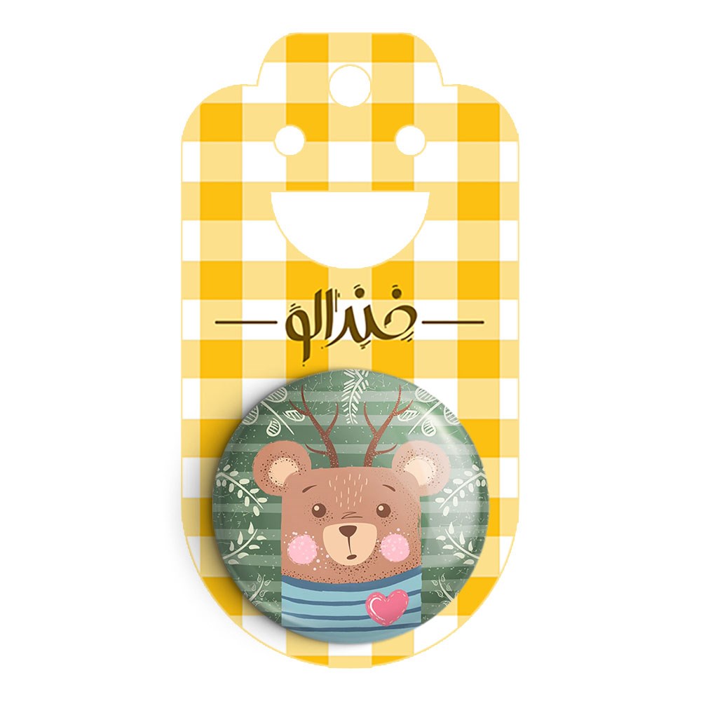 پیکسل 44 میلی متری خرس خندالو با روکش سلفون حرارتی مات مخملی ضدخش و قطعه پشتی رنگی تولید شده است.پلاستیکی پشت پیکسل با سوزن یک تکه ثابت و بدون لغزش و جا به جایی، ایستایی بسیار بهتری نسبت به پشتی فلزی پیکسل دارند که این مهم در تولید این محصول نیز رعایت شده است.