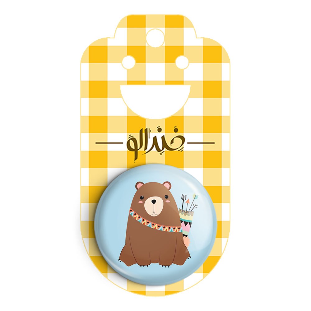 پیکسل 44 میلی متری خرس خندالو با روکش سلفون حرارتی مات مخملی ضدخش و قطعه پشتی رنگی تولید شده است.پلاستیکی پشت پیکسل با سوزن یک تکه ثابت و بدون لغزش و جا به جایی، ایستایی بسیار بهتری نسبت به پشتی فلزی پیکسل دارند که این مهم در تولید این محصول نیز رعایت شده است.