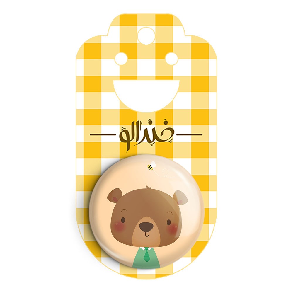 پیکسل 44 میلی متری خرس خندالو با روکش سلفون حرارتی مات مخملی ضدخش و قطعه پشتی رنگی تولید شده است.پلاستیکی پشت پیکسل با سوزن یک تکه ثابت و بدون لغزش و جا به جایی، ایستایی بسیار بهتری نسبت به پشتی فلزی پیکسل دارند که این مهم در تولید این محصول نیز رعایت شده است.