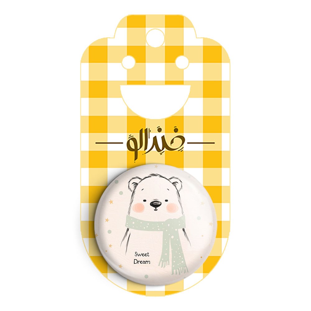 پیکسل 44 میلی متری خرس خندالو با روکش سلفون حرارتی مات مخملی ضدخش و قطعه پشتی رنگی تولید شده است.پلاستیکی پشت پیکسل با سوزن یک تکه ثابت و بدون لغزش و جا به جایی، ایستایی بسیار بهتری نسبت به پشتی فلزی پیکسل دارند که این مهم در تولید این محصول نیز رعایت شده است.