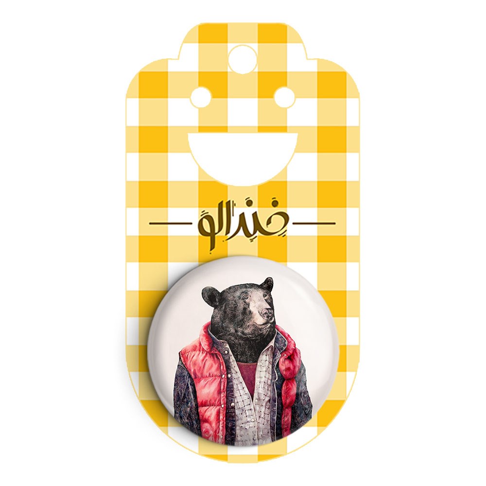 پیکسل 44 میلی متری خرس خندالو با روکش سلفون حرارتی مات مخملی ضدخش و قطعه پشتی رنگی تولید شده است.پلاستیکی پشت پیکسل با سوزن یک تکه ثابت و بدون لغزش و جا به جایی، ایستایی بسیار بهتری نسبت به پشتی فلزی پیکسل دارند که این مهم در تولید این محصول نیز رعایت شده است.