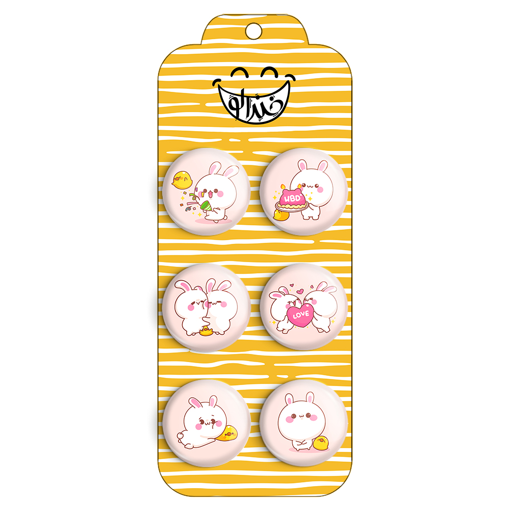 مجموعه 6 عددی پیکسل خندالو طرح خرگوش بامزه با روکش سلفون حرارتی براق ضدخش و قطعه پشتی رنگی تولید شده است. قطعات پشتی از میان 6 رنگ سفید، مشکی، صورتی، زرد، آبی و قرمز که با توجه به نوع و رنگبندی طرح روی پیکسل انتخاب شده اند تولید می شود و در هر بسته بندی مطابق عکس محصول می باشد. قطعات پلاستیکی پشت پیکسل با سوزن یک تکه ثابت و بدون لغزش و جا به جایی، ایستایی بسیار بهتری نسبت به پشتی فلزی پیکسل دارند که این مهم در تولید این محصول نیز رعایت شده است. چاپ پیکسل نیز با دستگاه های استاندارد و با بهترین سطح کیفی صورت گرفته و طرح با شفافیتی مثال زدنی و با سلفونی بدون شکست نور بر روی پیکسل نقش بسته است. همچنین بسته بندی جذاب و مینیمال پیکسل ها، آنها را مناسب هدیه کرده است..