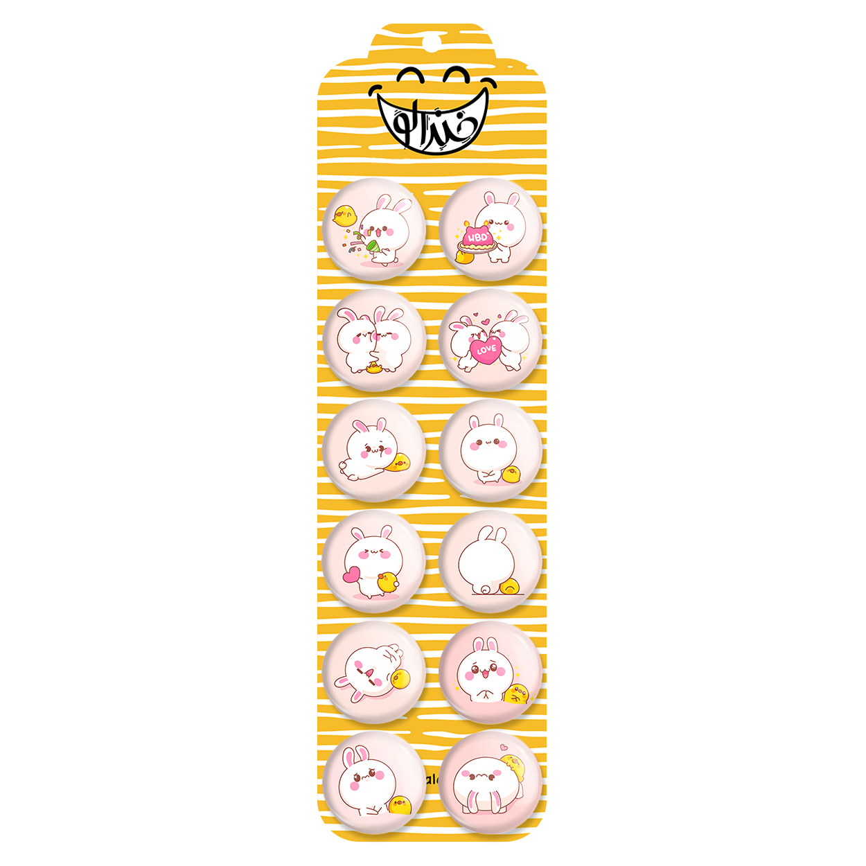پک 12 عددی پیکسل خندالو طرح خرگوش بامزه با روکش سلفون حرارتی براق ضدخش و قطعه پشتی رنگی تولید شده است. قطعات پشتی از میان 6 رنگ سفید، مشکی، صورتی، زرد، آبی و قرمز که با توجه به نوع و رنگبندی طرح روی پیکسل انتخاب شده اند تولید می شود و در هر بسته بندی مطابق عکس محصول می باشد. قطعات پلاستیکی پشت پیکسل با سوزن یک تکه ثابت و بدون لغزش و جا به جایی، ایستایی بسیار بهتری نسبت به پشتی فلزی پیکسل دارند که این مهم در تولید این محصول نیز رعایت شده است. چاپ پیکسل طرح خرگوش بامزه بسته ۱۲ عددی نیز با دستگاه های استاندارد و با بهترین سطح کیفی صورت گرفته و طرح با شفافیتی مثال زدنی و با سلفونی بدون شکست نور بر روی پیکسل نقش بسته است.