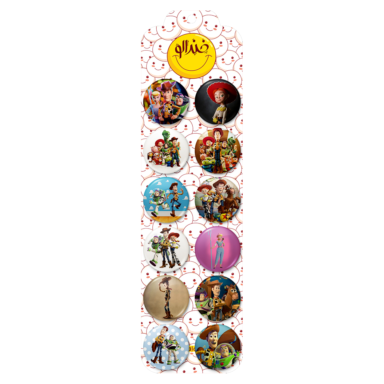 پک 12 عددی پیکسل خندالو طرح داستان اسباب بازی ها (Toy Story) با روکش سلفون حرارتی براق ضدخش و قطعه پشتی رنگی تولید شده است. قطعات پشتی از میان 6 رنگ سفید، مشکی، صورتی، زرد، آبی و قرمز که با توجه به نوع و رنگبندی طرح روی پیکسل انتخاب شده اند تولید می شود و در هر بسته بندی مطابق عکس محصول می باشد. قطعات پلاستیکی پشت پیکسل با سوزن یک تکه ثابت و بدون لغزش و جا به جایی، ایستایی بسیار بهتری نسبت به پشتی فلزی پیکسل دارند که این مهم در تولید این محصول نیز رعایت شده است.