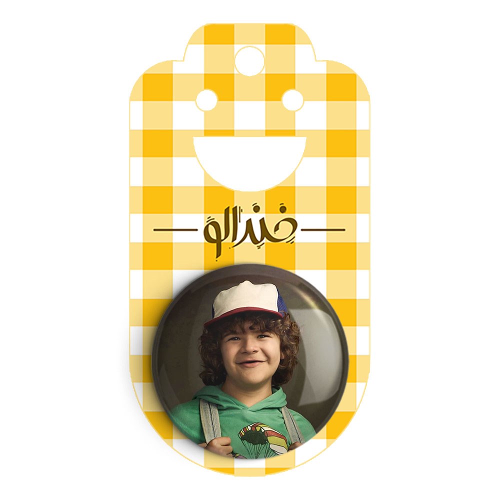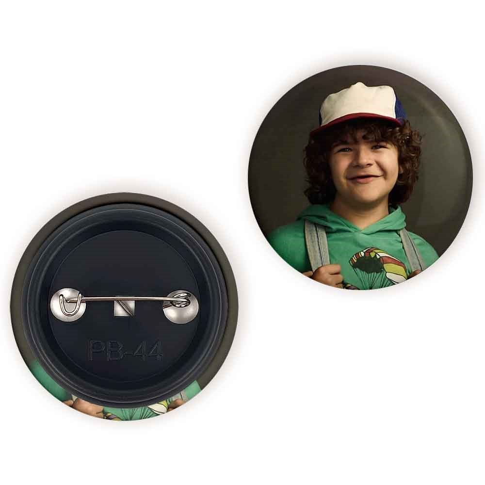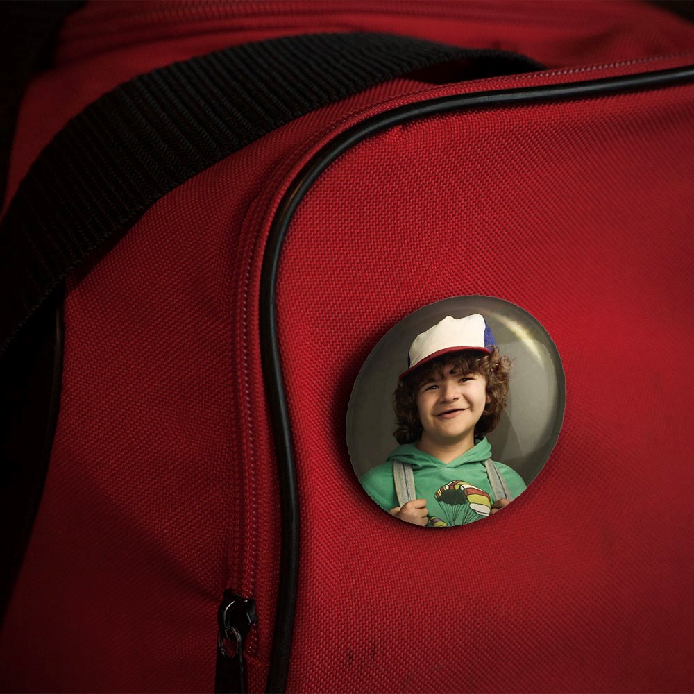 پیکسل 44 میلی متری داستین سریال استرنجر تینگز Stranger Things خندالو با روکش سلفون حرارتی مات مخملی ضدخش و قطعه پشتی رنگی تولید شده است.پلاستیکی پشت پیکسل با سوزن یک تکه ثابت و بدون لغزش و جا به جایی، ایستایی بسیار بهتری نسبت به پشتی فلزی پیکسل دارند که این مهم در تولید این محصول نیز رعایت شده است.